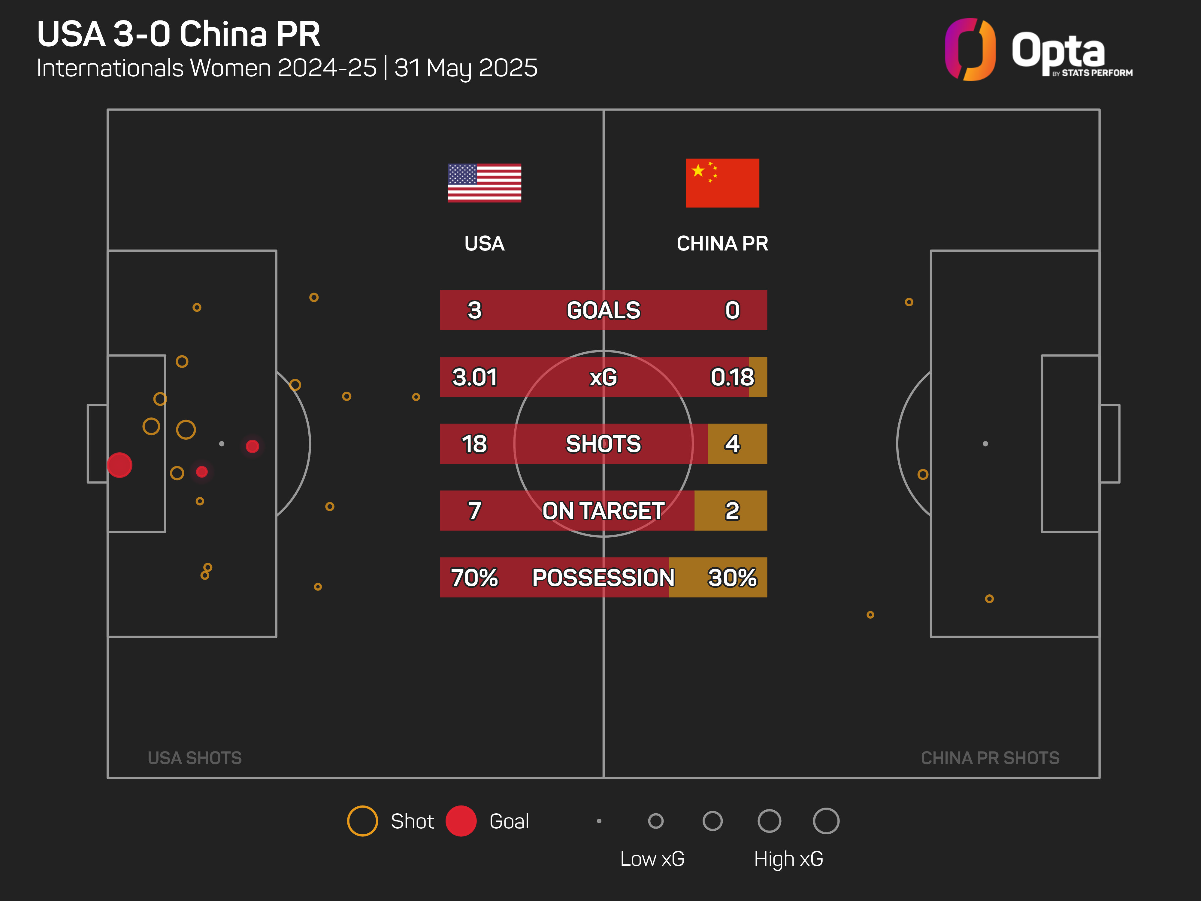 Lindsey Heaps' header put the game beyond China early in the second half. Her 13 headed goals for the USWNT are the joint-second most by any player since the start of 2015, behind Carli Lloyd on 21 and level with Alex Morgan.