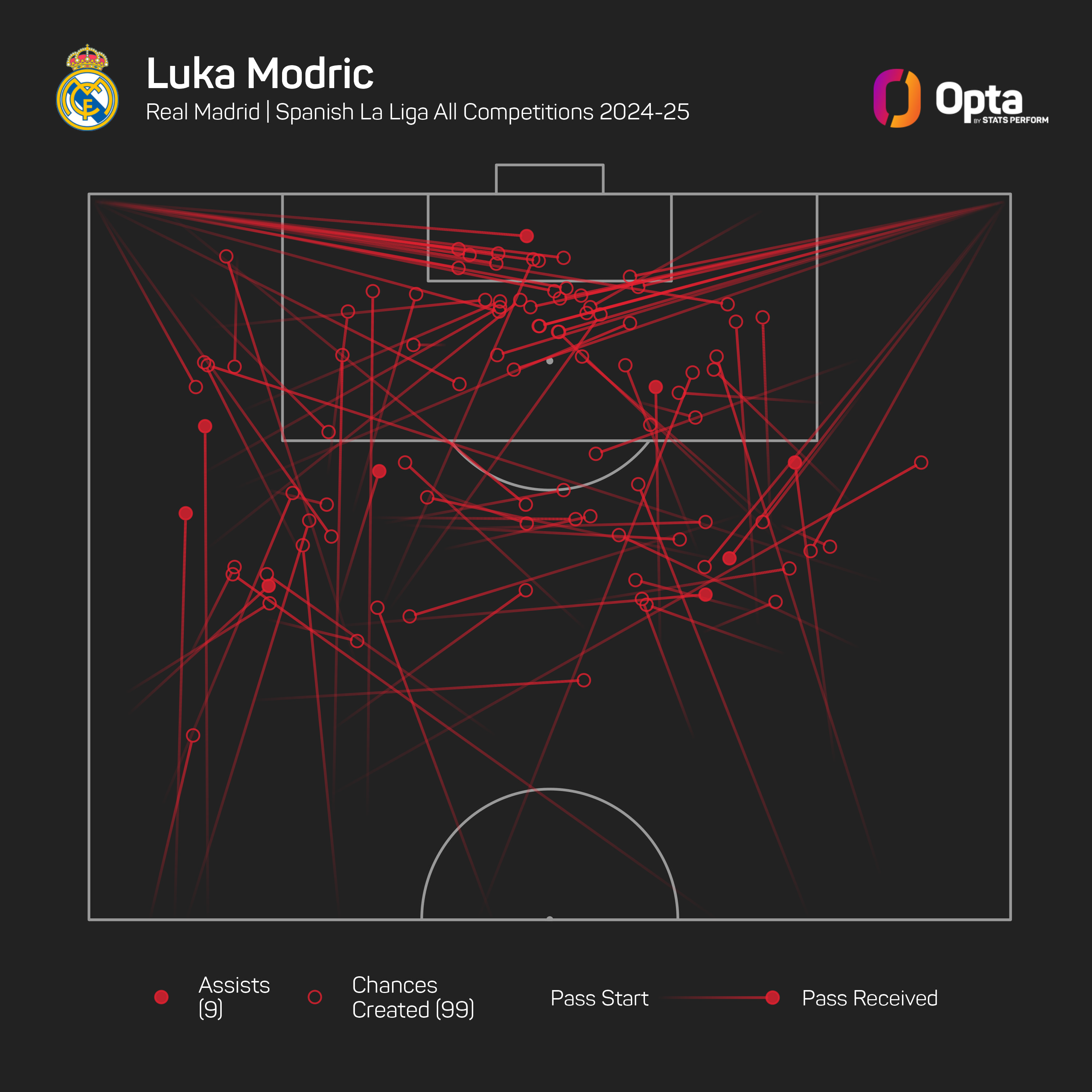 And only Vinicius Junior (101) created more chances than the Croatian (99).