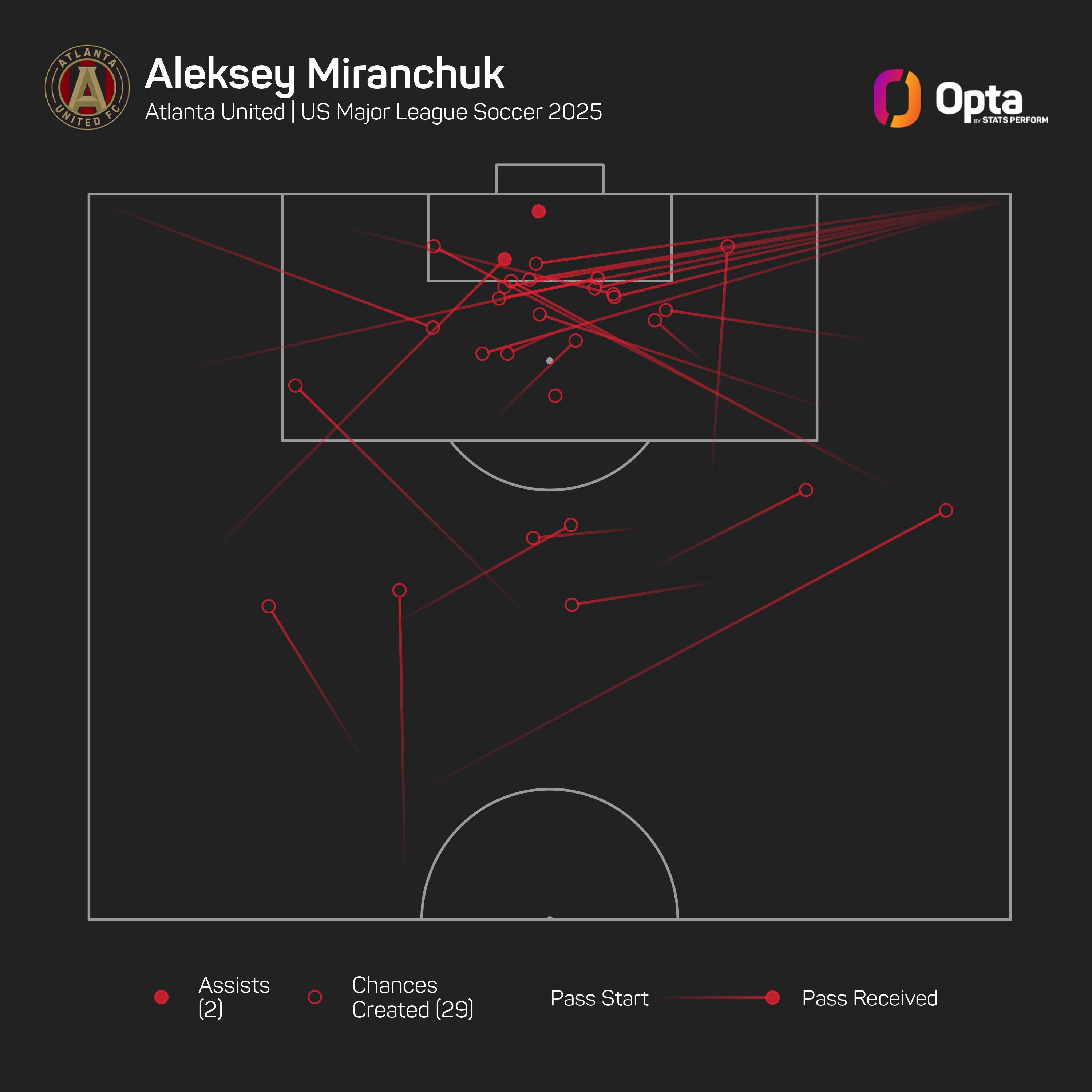 Miranchuk was key to Atlanta's victory over Cincinnati, grabbing his first two assists of the season, which went along with a fine individual display.