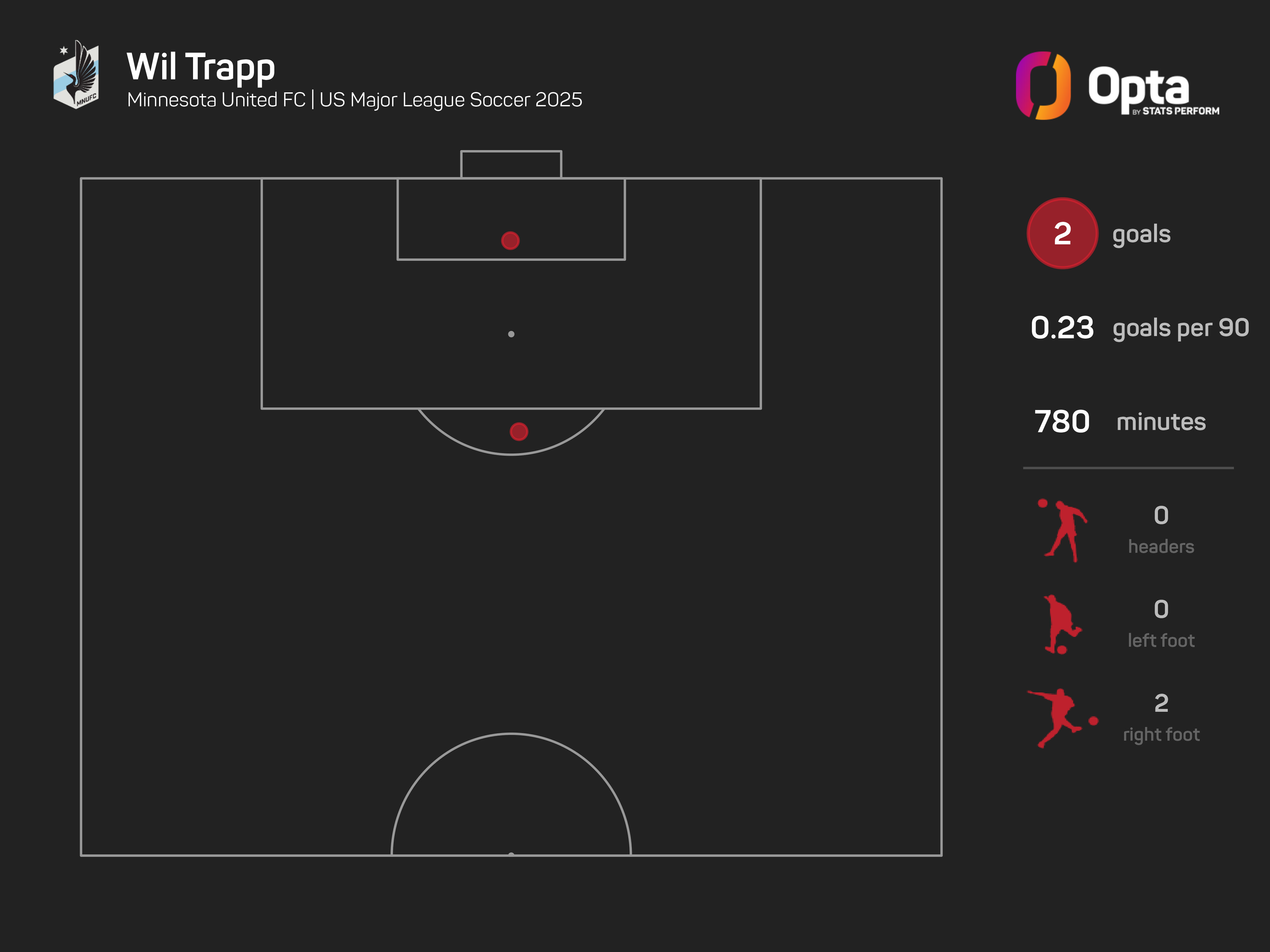 Trapp has scored each of Minnesota's last two MLS goals. This is his 13th MLS season and the first time he's scored multiple goals in a single campaign.