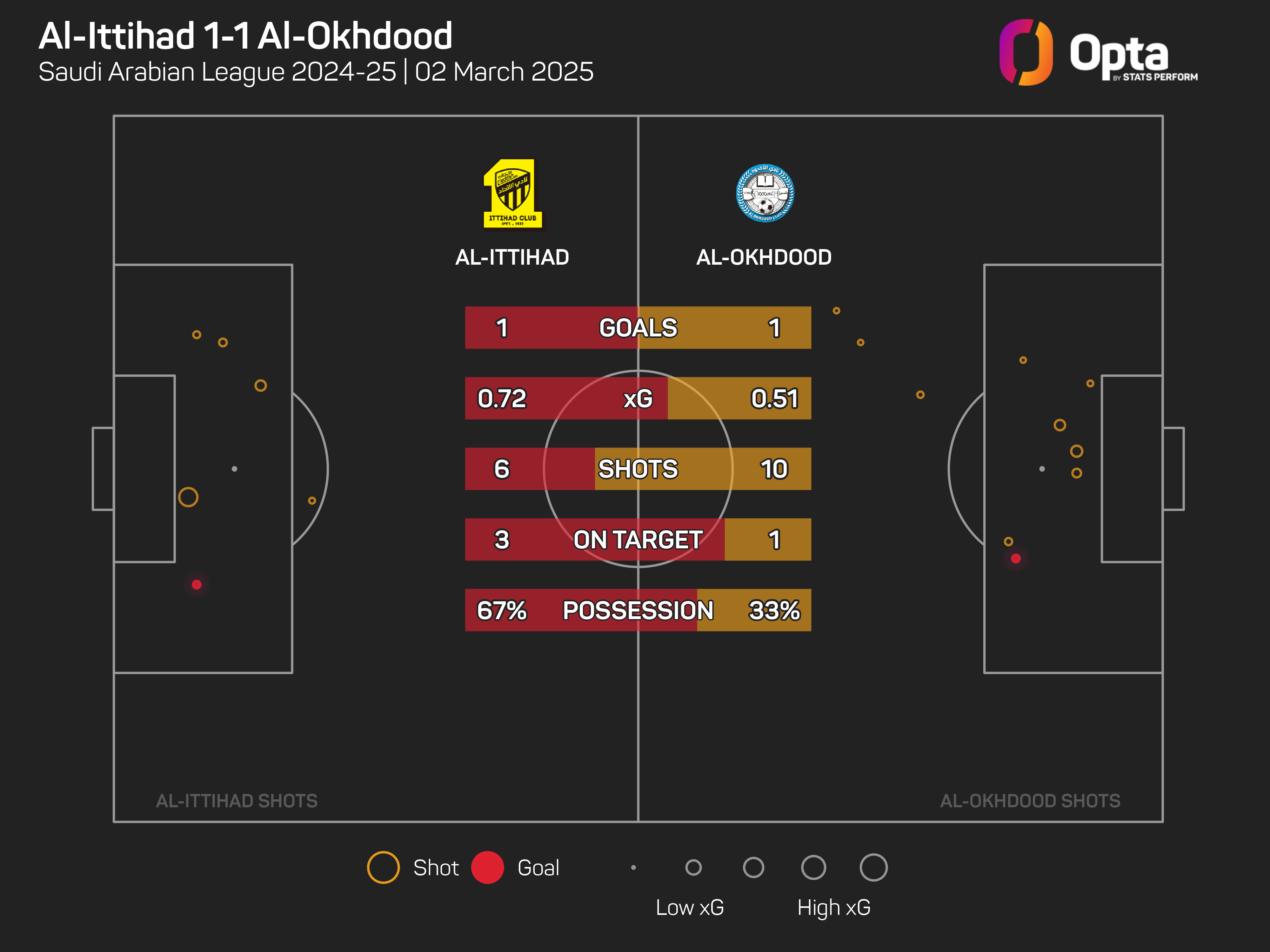 Christian Bassogog's stunning late leveller denied Al-Ittihad the chance to move eight points clear at the Saudi Pro League summit after they were held 1-1 by Al-Okhdood.