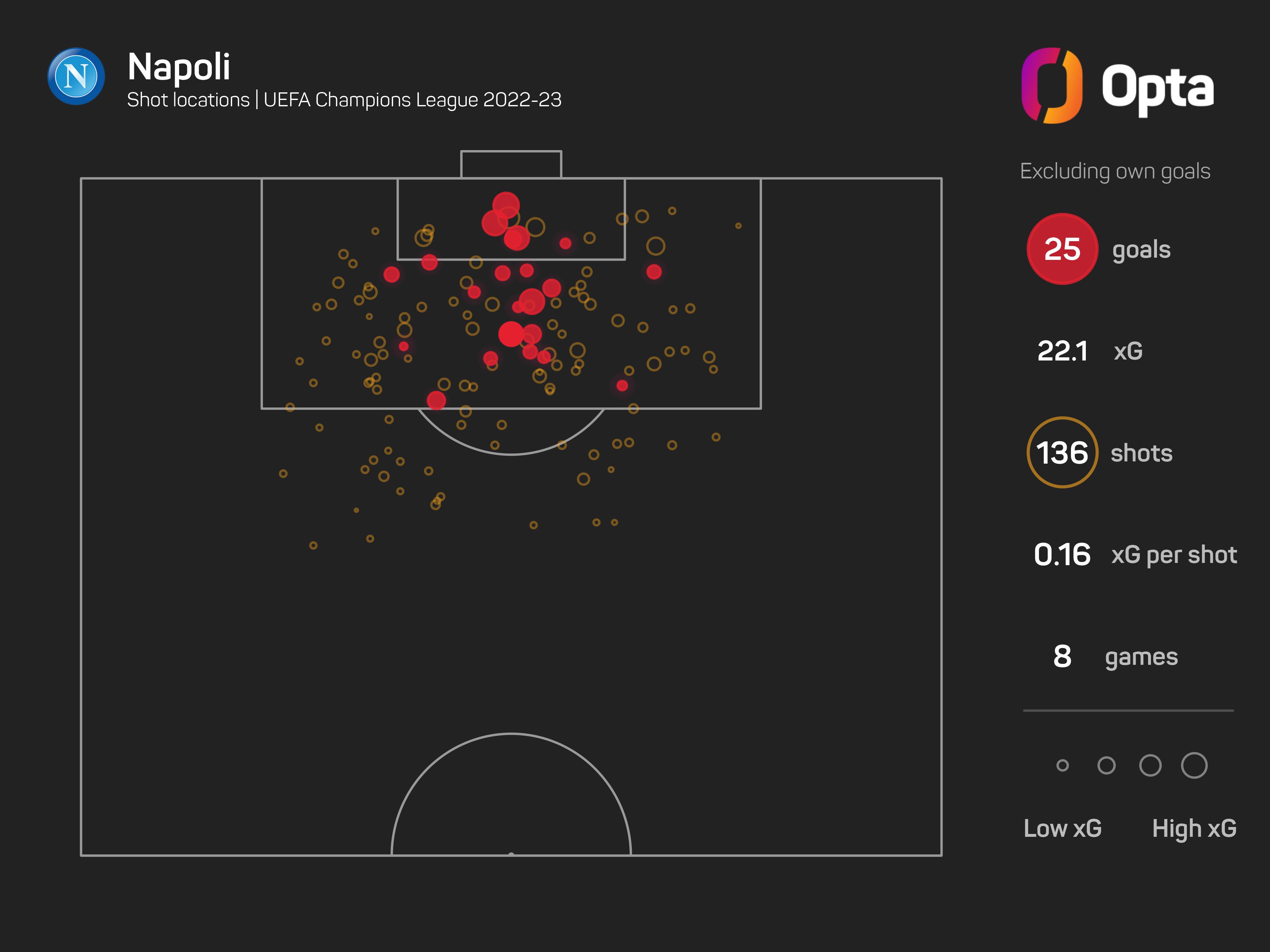 Furthermore, Napoli's average of 3.1 goals per game is the fifth-best in a single campaign after Bayern in 2019-20 (3.9), PSG in 2017-18 (3.4), Real Madrid in 2013-14 (3.2) and Liverpool in 2017-18 (3.2).