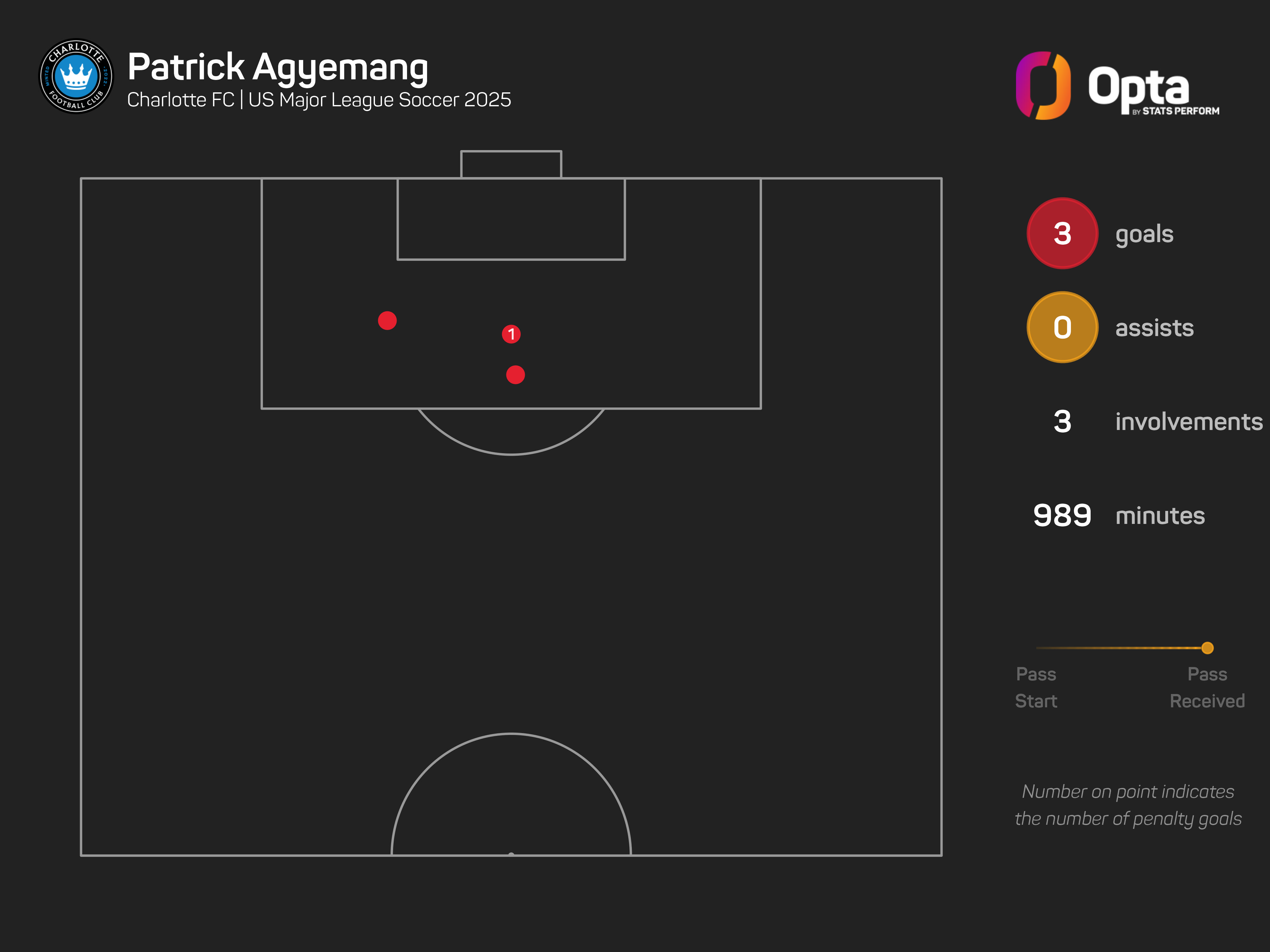 No player has scored more goals at Bank of America Stadium than Agyemang since he made his home debut for Charlotte in June 2023.