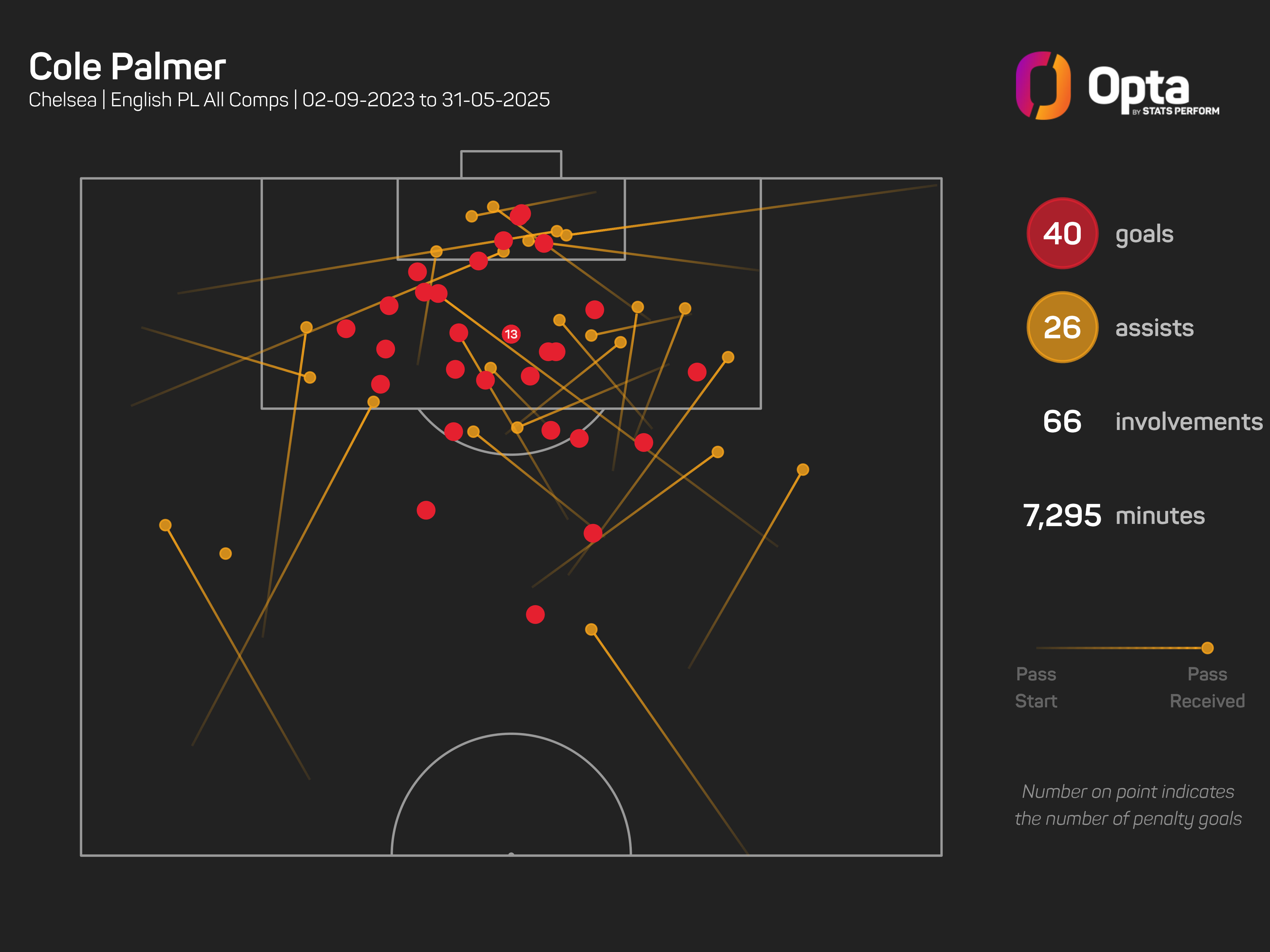 Palmer joined the Blues in 2023 from Manchester City and has become a standout player for Chelsea, netting 40 goals and providing 26 assists in all competitions.
