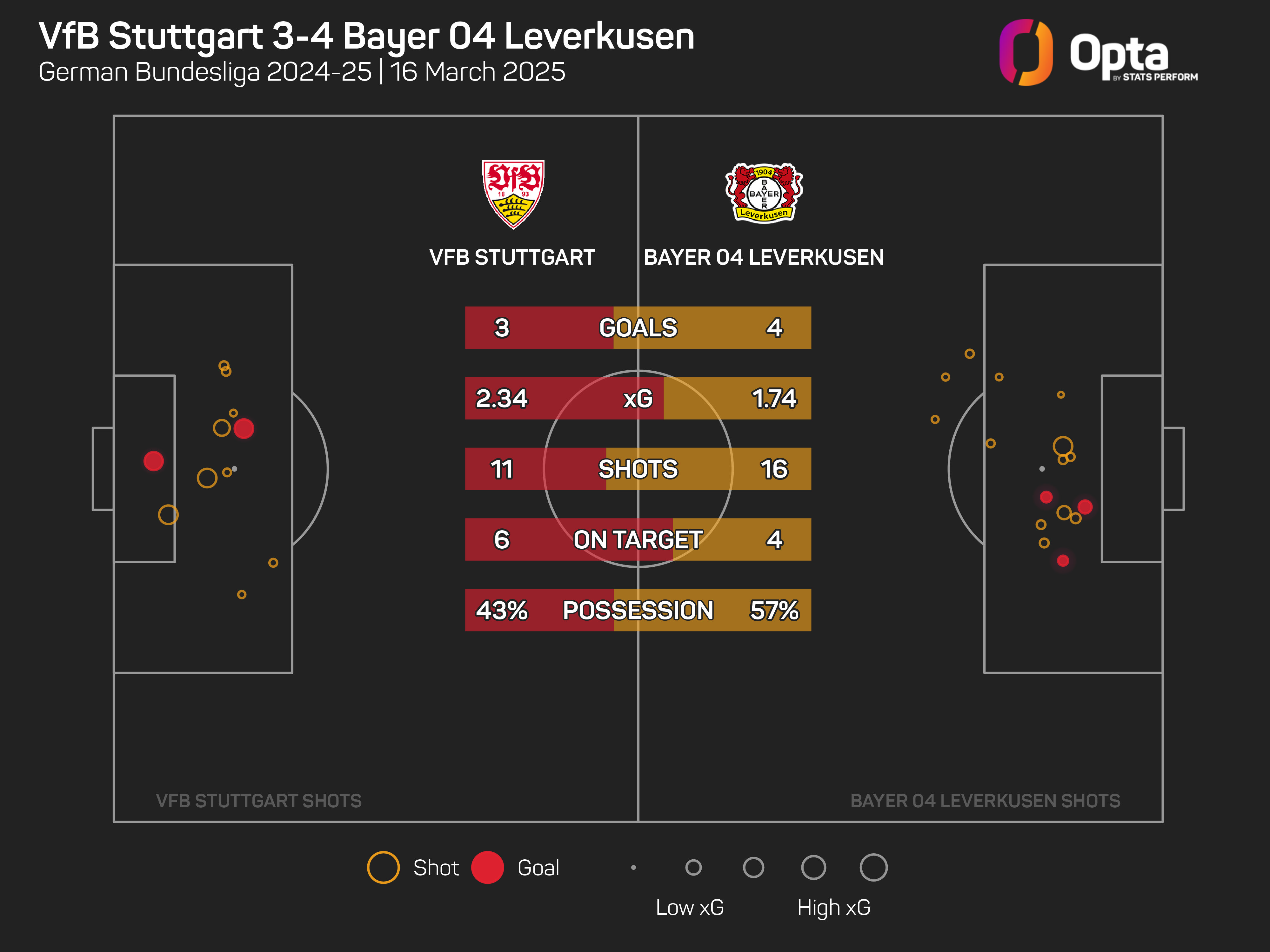 However, the Werkself are six points adrift of first place – since three points for a win was introduced, only Stuttgart in 2006-07 (seven points behind after matchday 26) have ever overturned such a deficit this late on in a Bundesliga season to win the title.