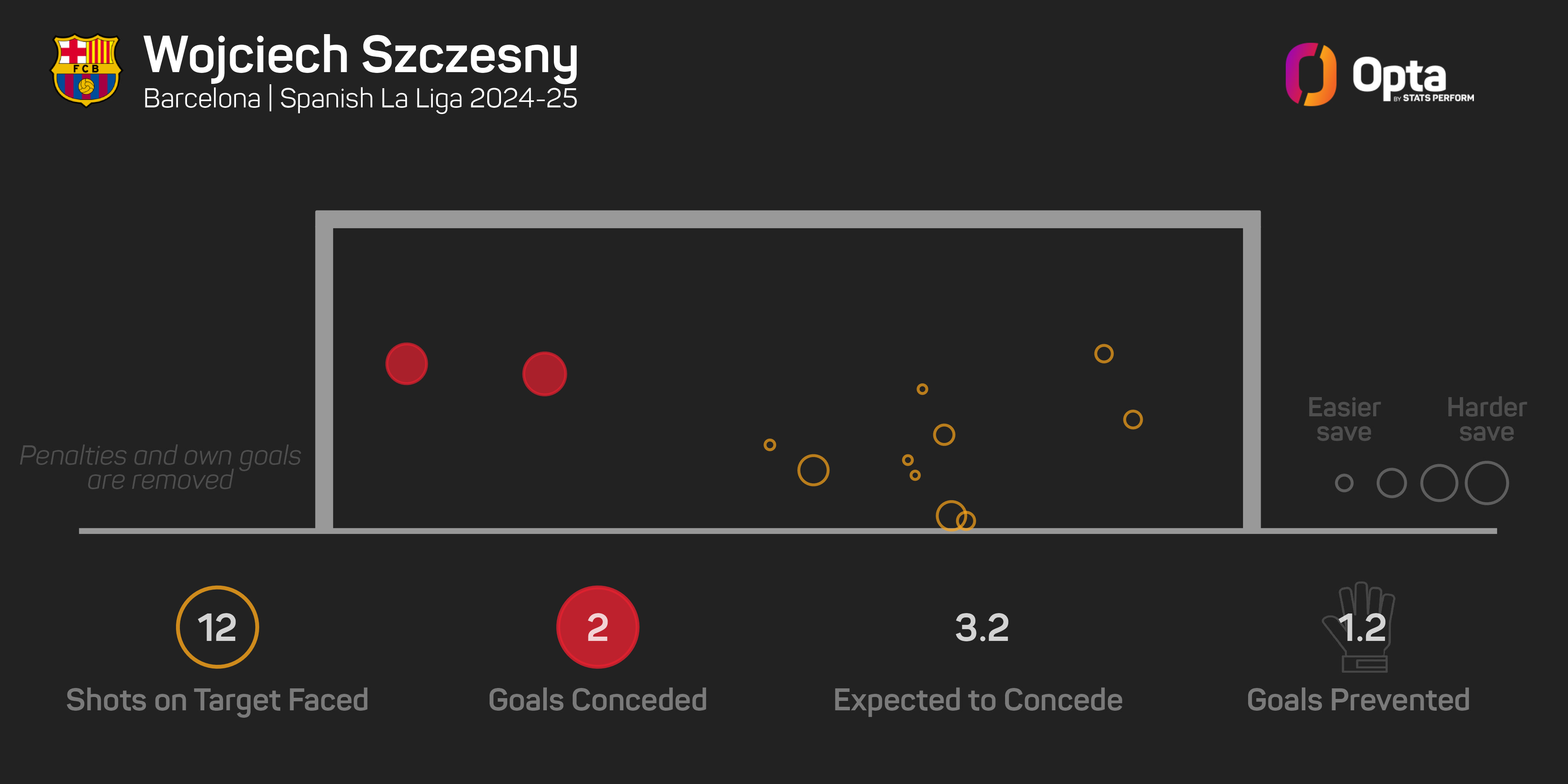 Szczesny made eight saves for Barcelona in their 1-0 win over Benfica in the first leg of their last 16 tie, a huge result after Pau Cubarsi's 22nd-minute red card.