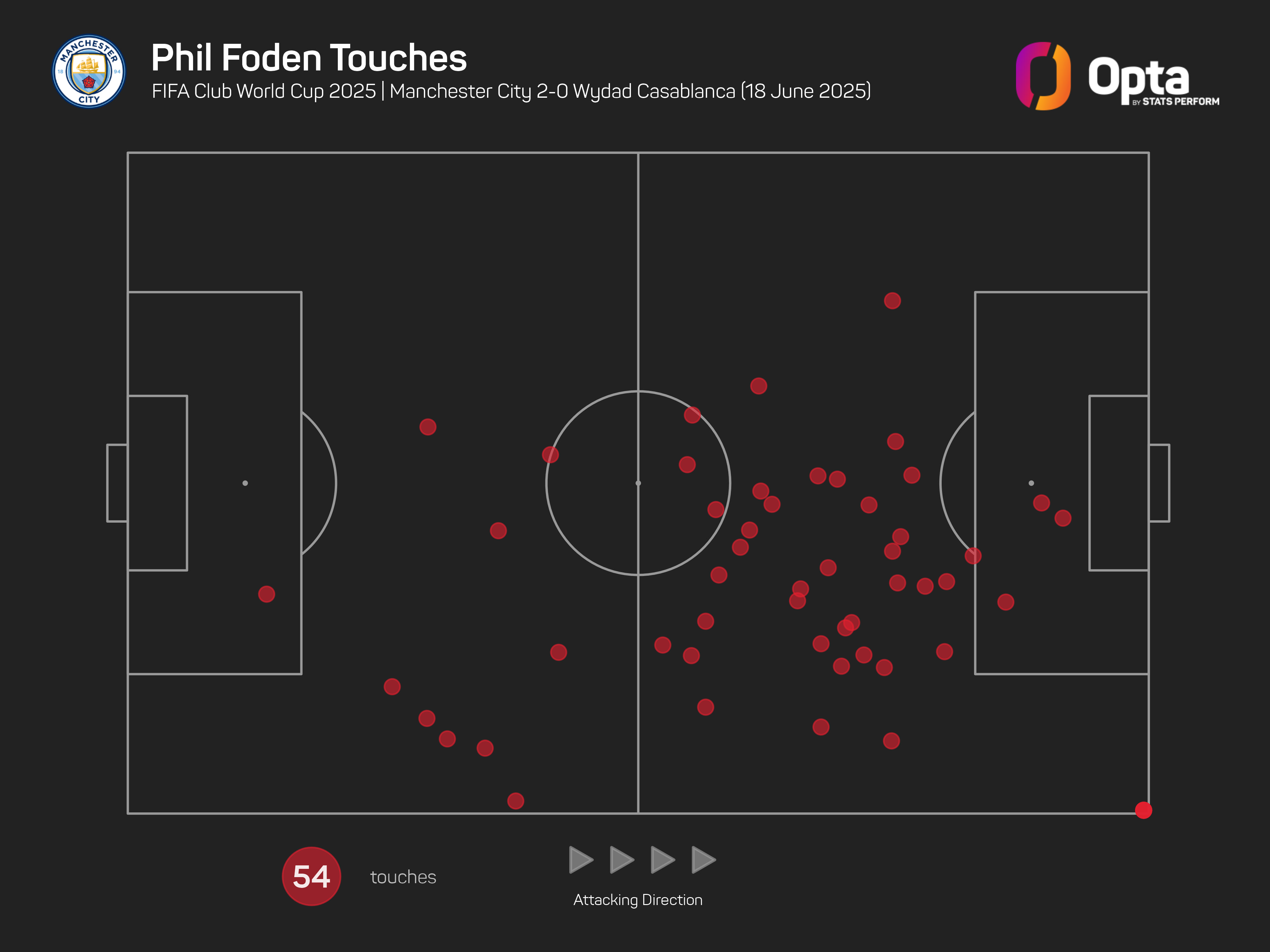 Foden ended the game with team-high totals for shots (four), while only Savinho (three) created more chances than the England international (two, level with Omar Marmoush).