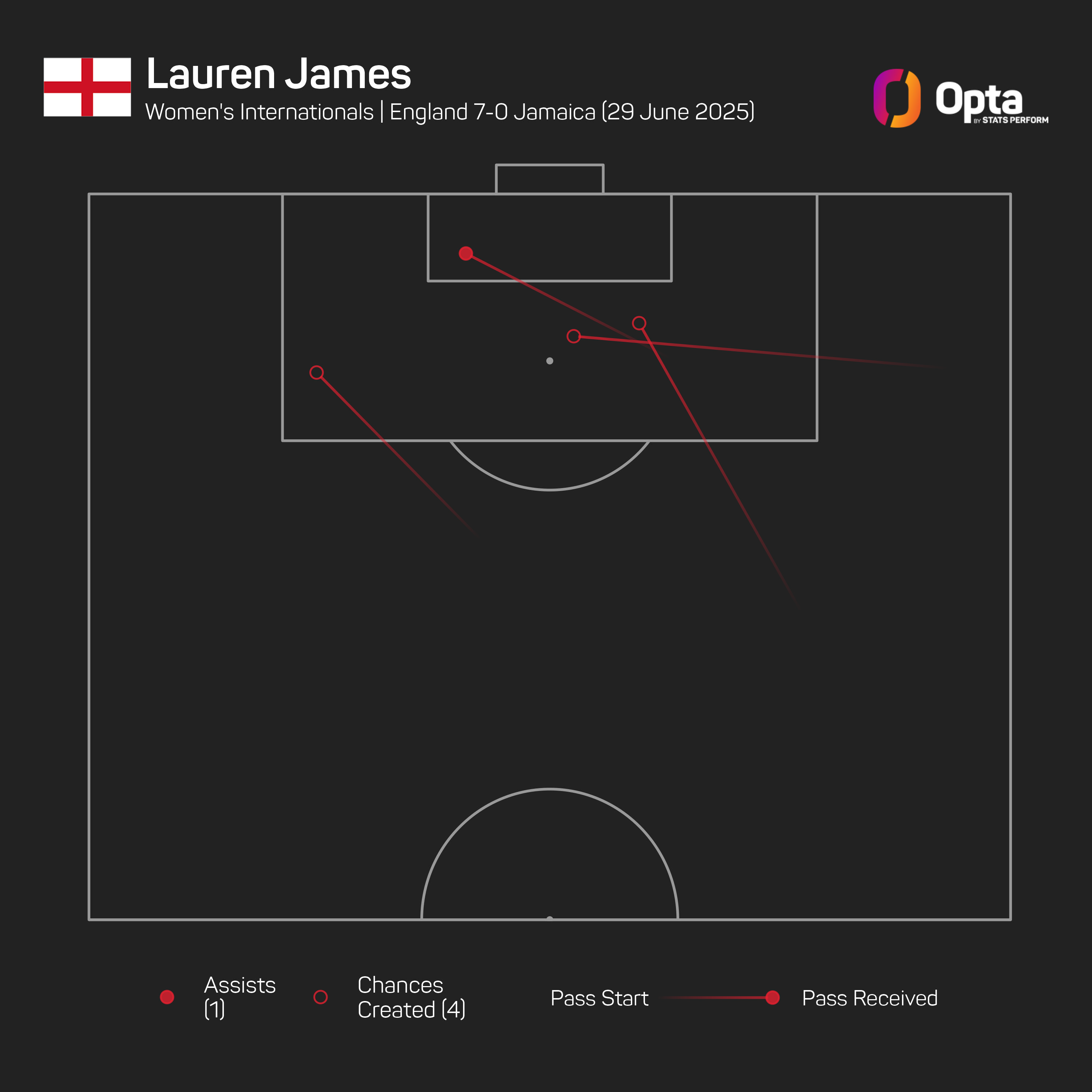 James created four chances overall, with only Beth Mead, who played the full 90 minutes, setting up more (six).