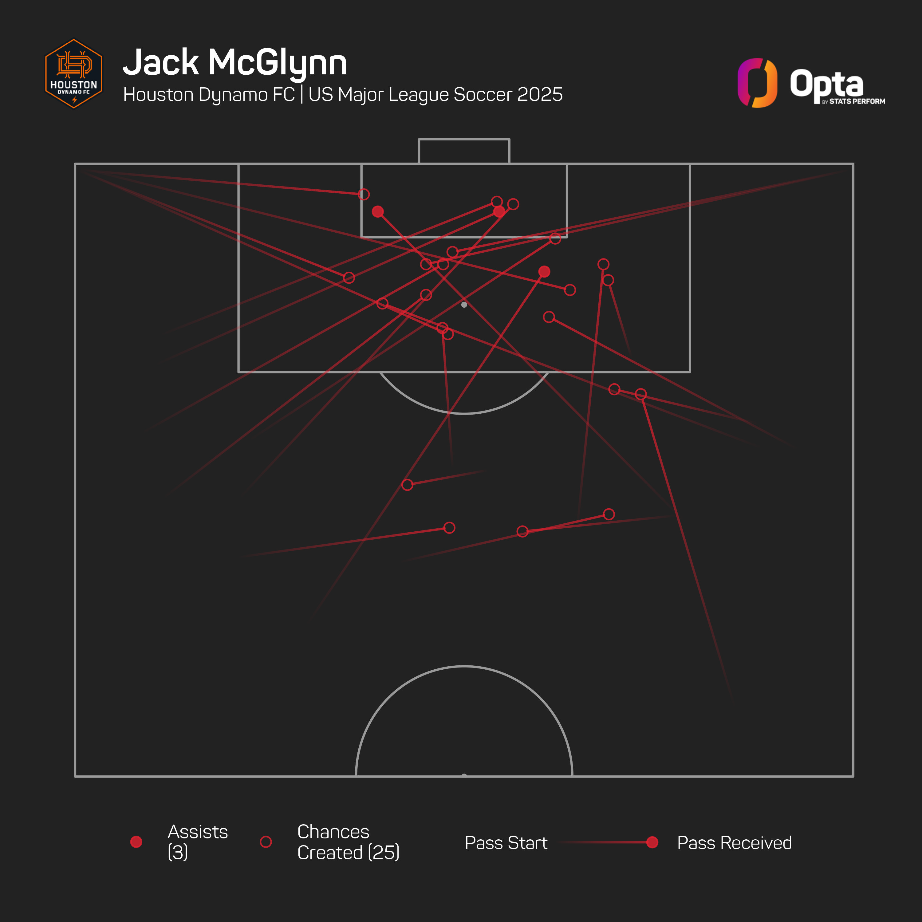 McGlynn was the standout performer for the Dynamo in their defeat to the Sounders, grabbing the assist for Awodesu's goal.