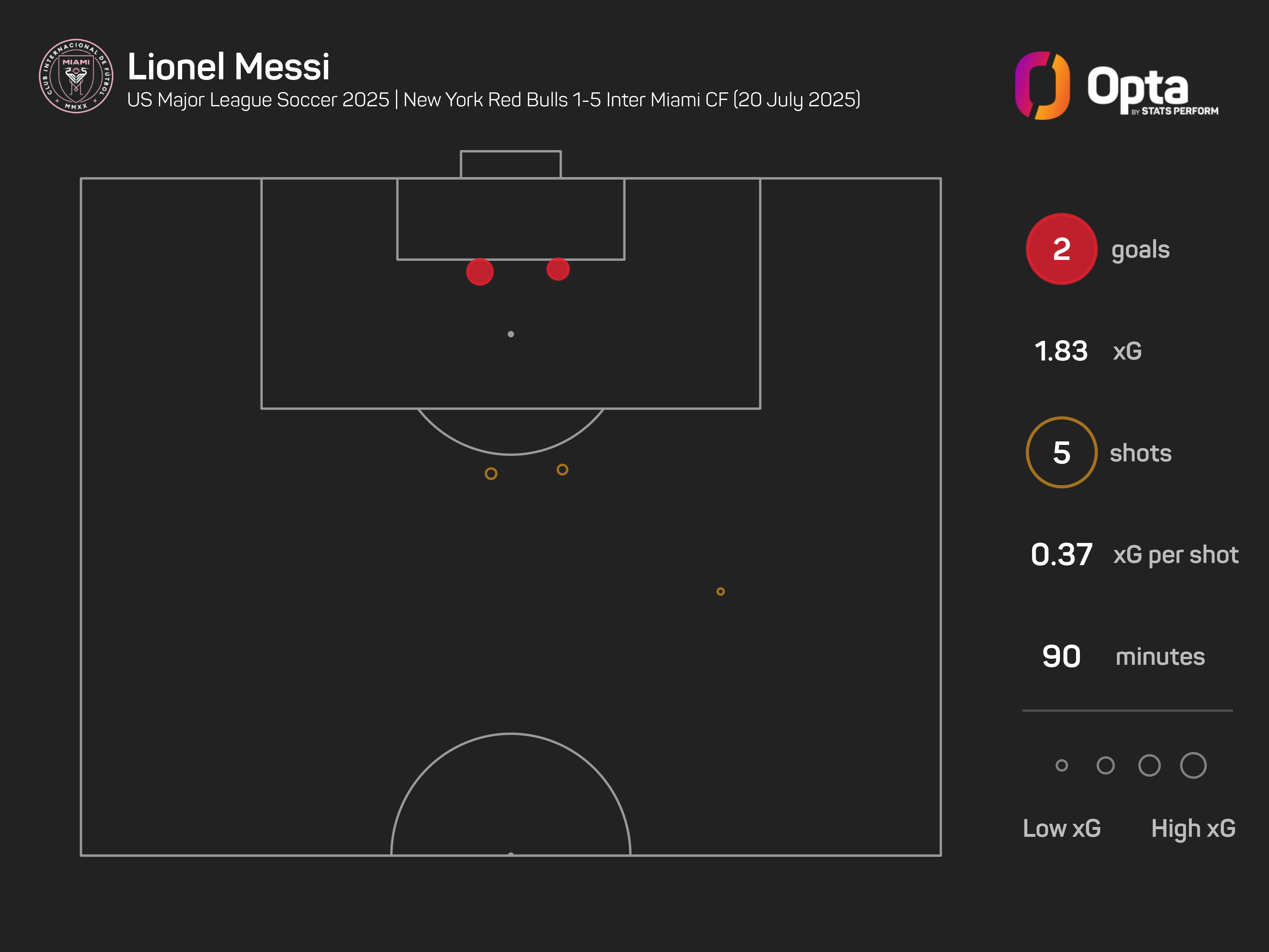 Messi also had the most expected goals (xG) of anyone on the pitch with 1.8, as well as the most shots (five), the most touches in the opposition box (11), the most final-third entries (nine) and the most chances created (four).