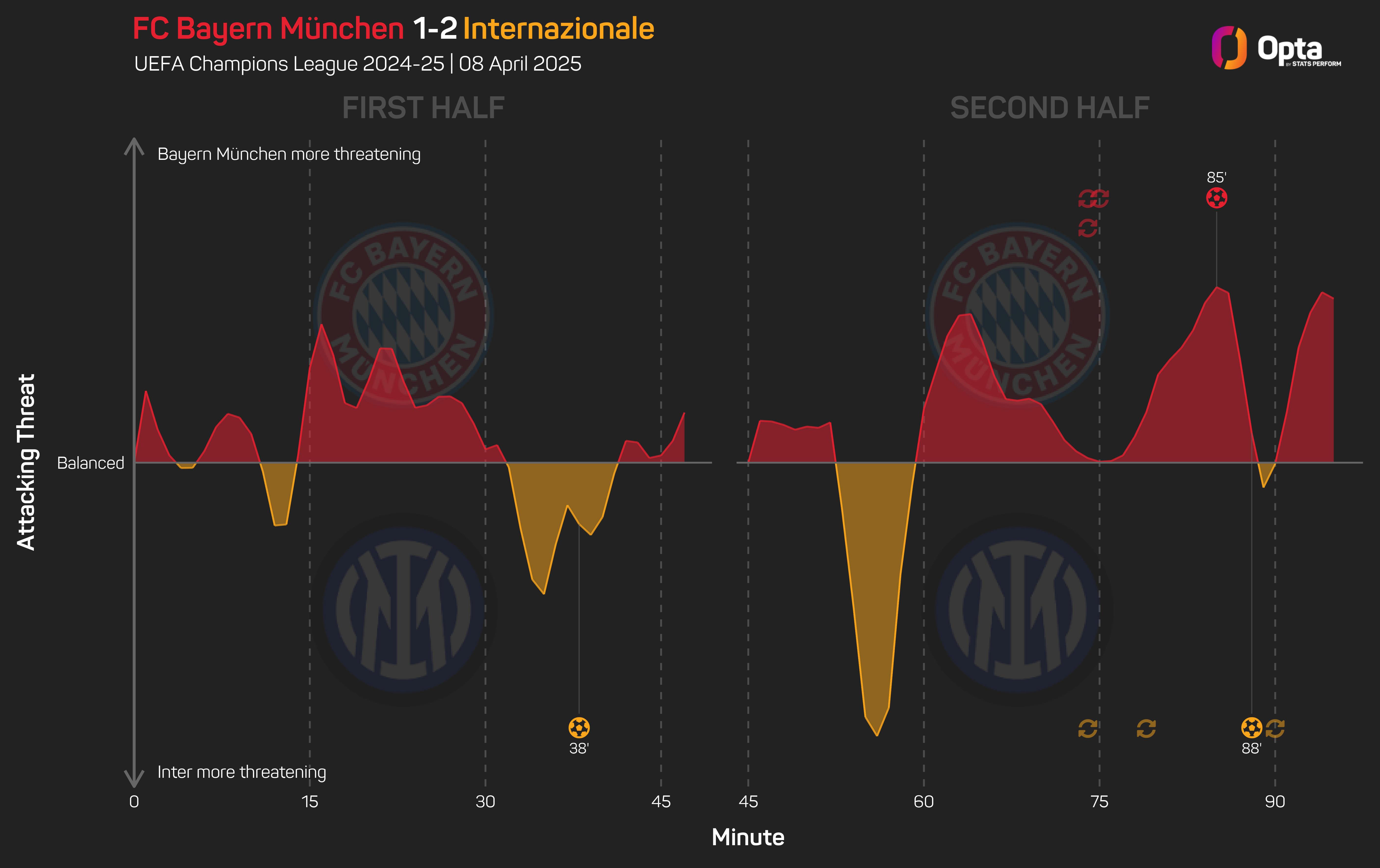Inter took a huge step towards the Champions League semi-finals on Tuesday, winning 2-1 at the Allianz Arena and giving themselves a lead to defeat at San Siro next week.