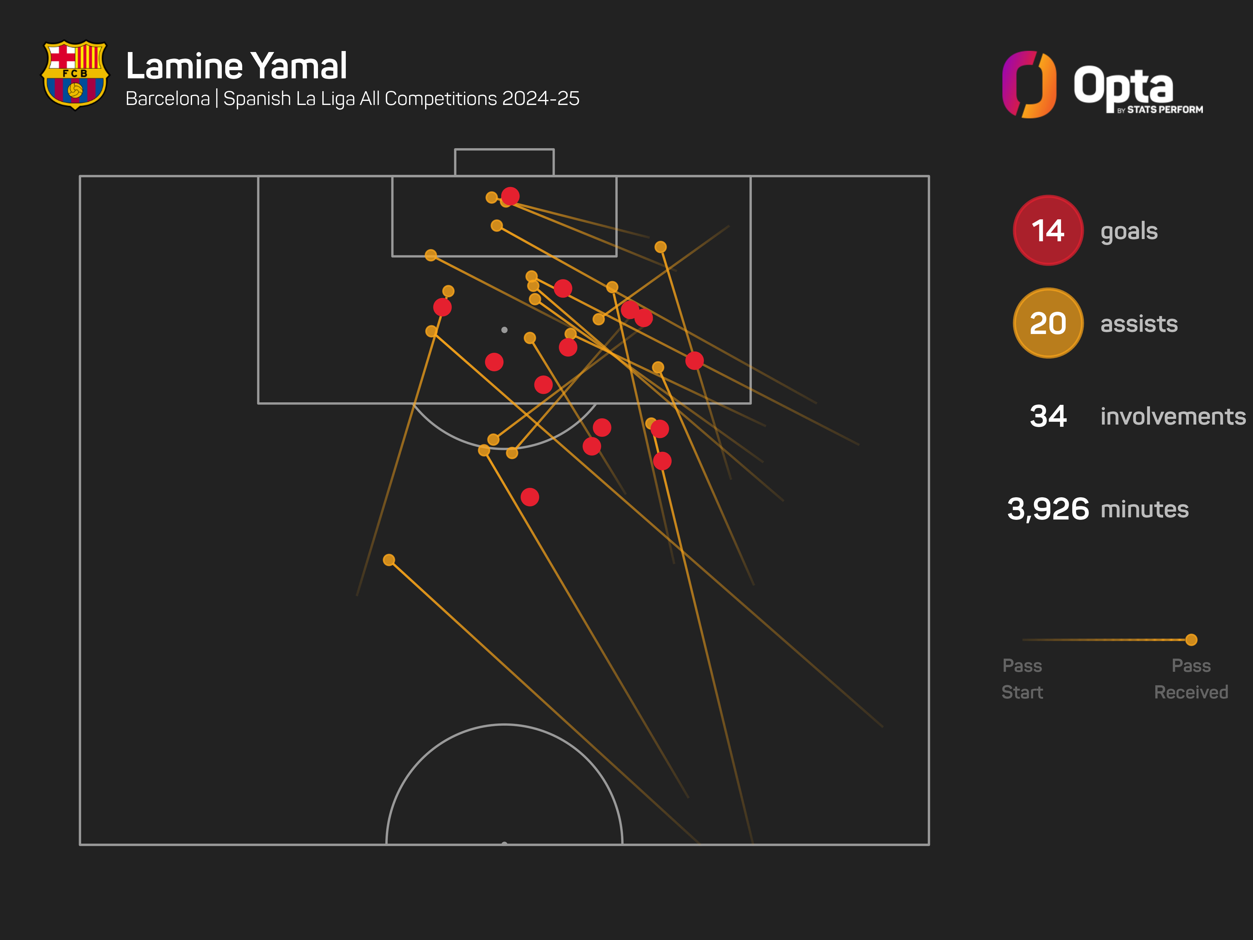 The 17-year-old has 34 goal contributions (14 goals, 20 assists) across all competitions this campaign, helping his team keep their treble hopes alive.