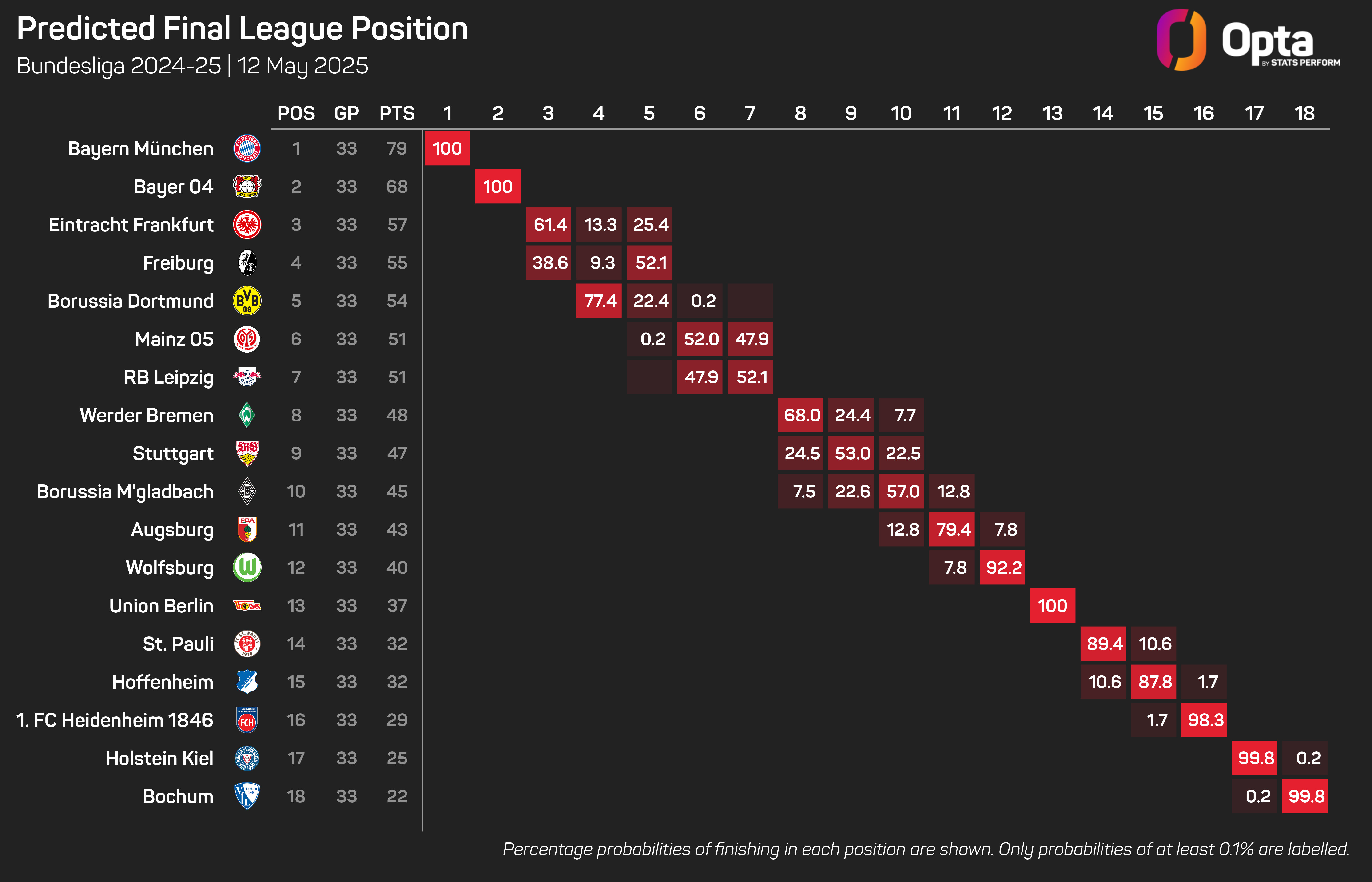 The Black and Yellow are given a 77.4% chance of clinching a place in the top four by the Opta supercomputer, with Freiburg’s hopes down at 47.9%.