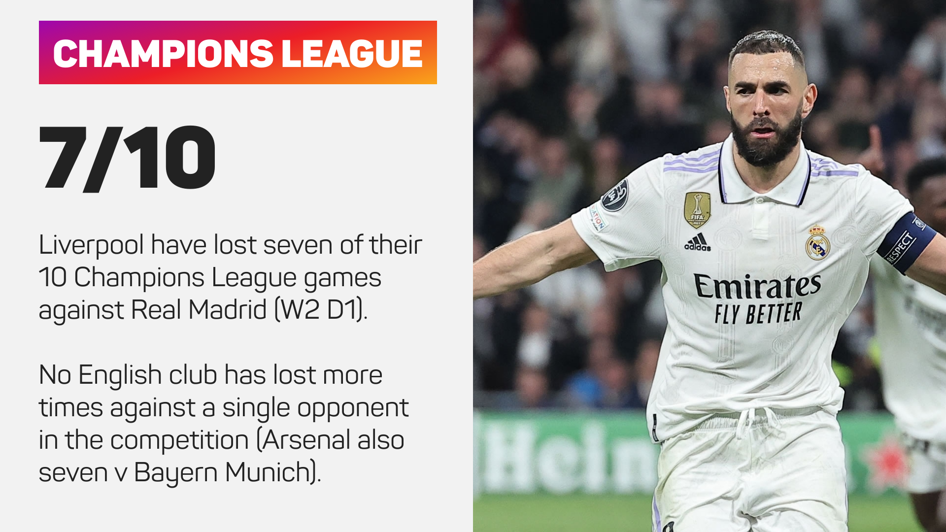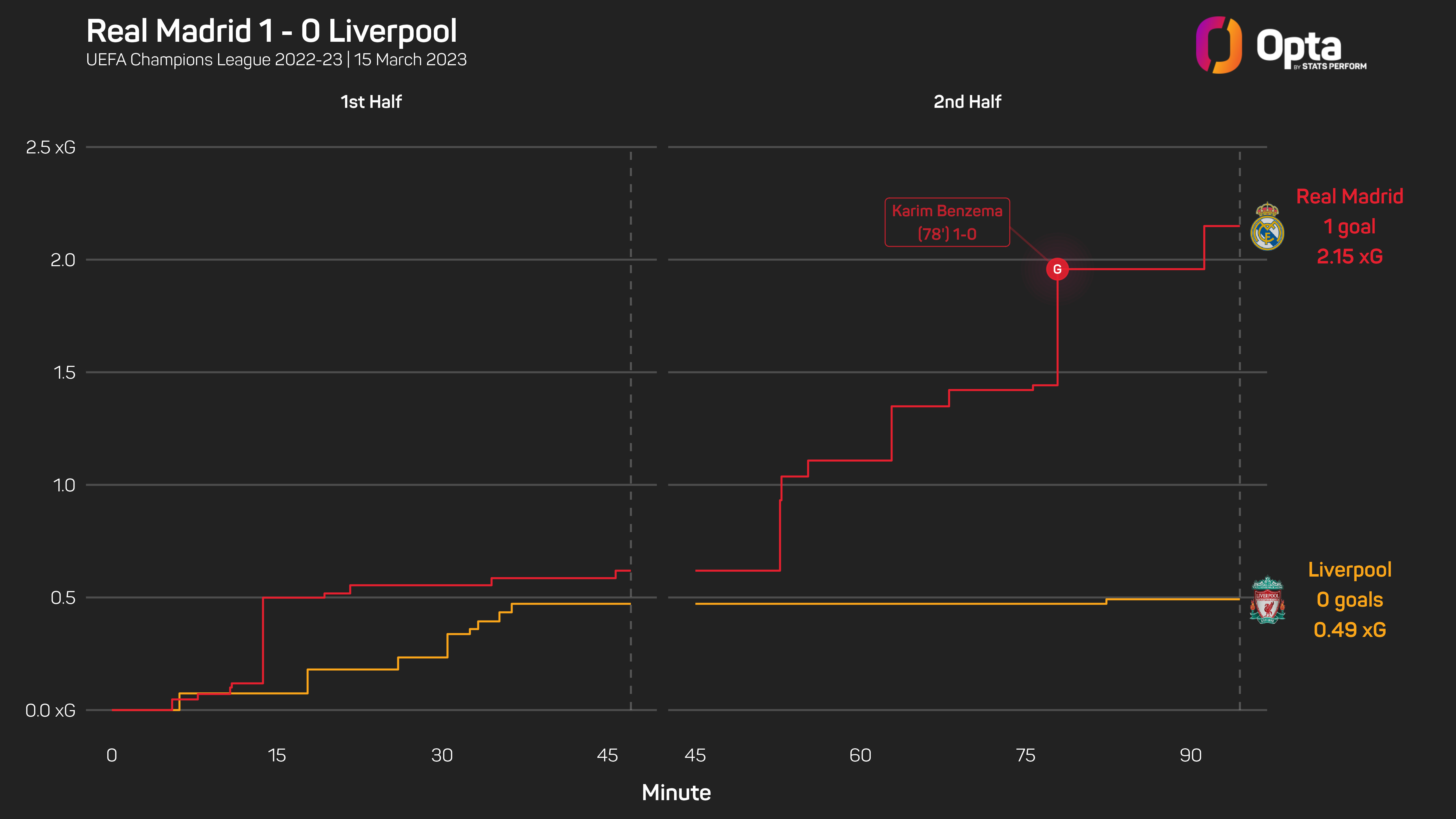 Incredibly, that Benzema goal came from the 11th shot on target of the second leg, with the first half in particular on a par with what we witnessed on Merseyside, albeit without the goals to show for it.