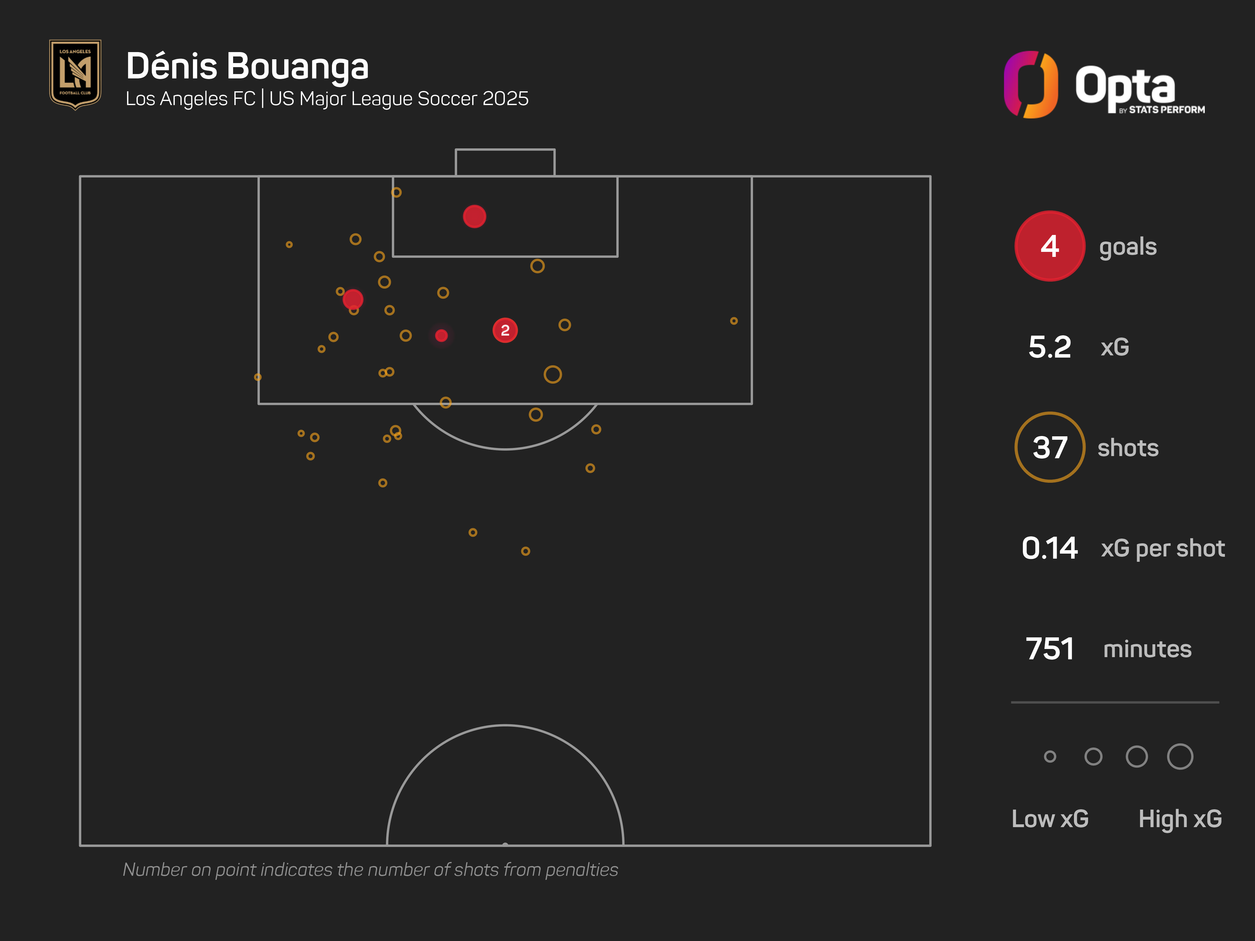 Bouanga scored twice to help rescue a 2-2 draw for LAFC with St. Louis City SC last weekend, though he also missed a second-half penalty.