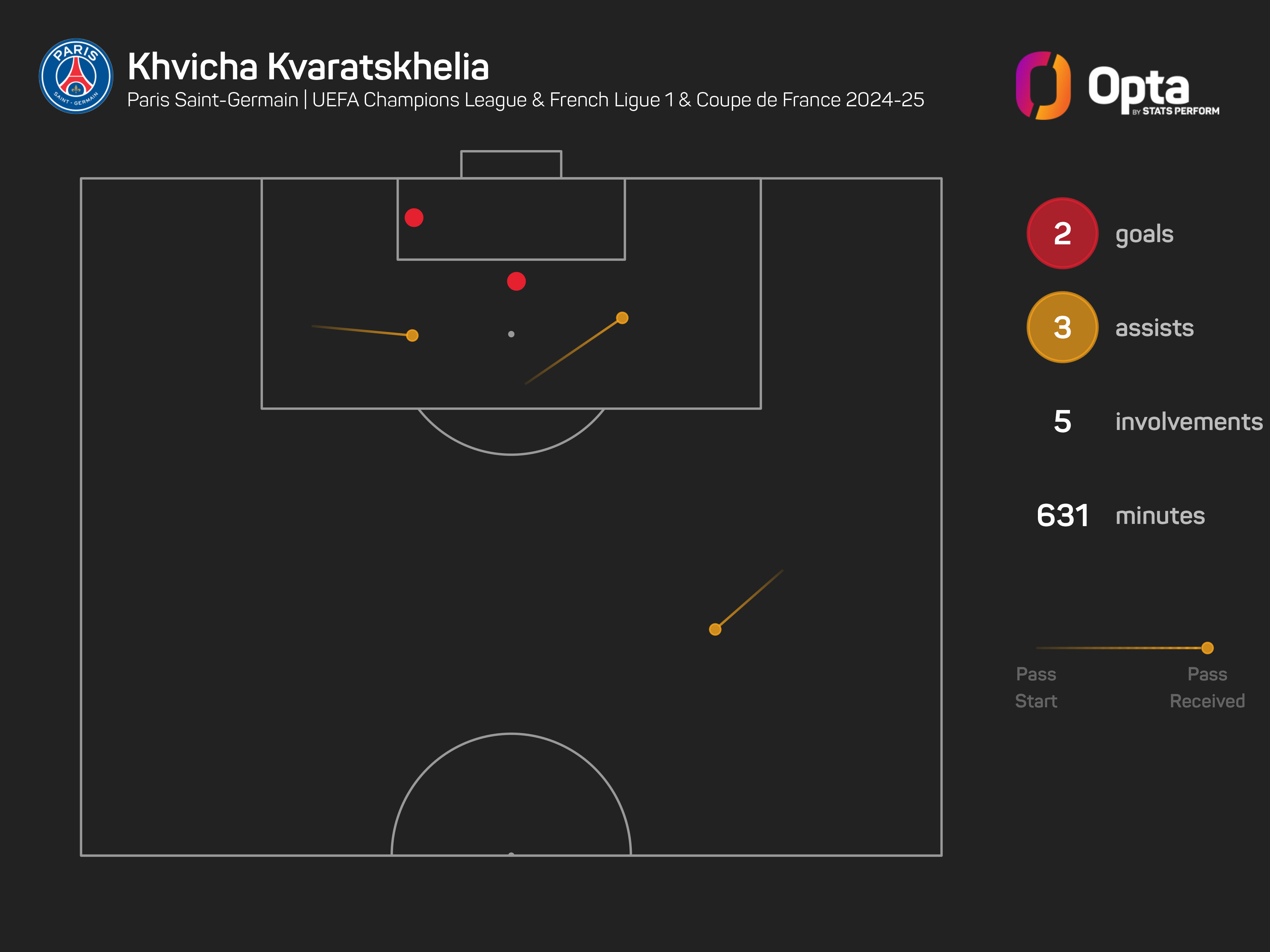 Indeed, since his debut in Ligue 1 on January 25, he has created more chances (12) than any of his PSG team-mates, while only Ousmane Dembele (13) has completed more dribbles than Kvaratskhelia (12).