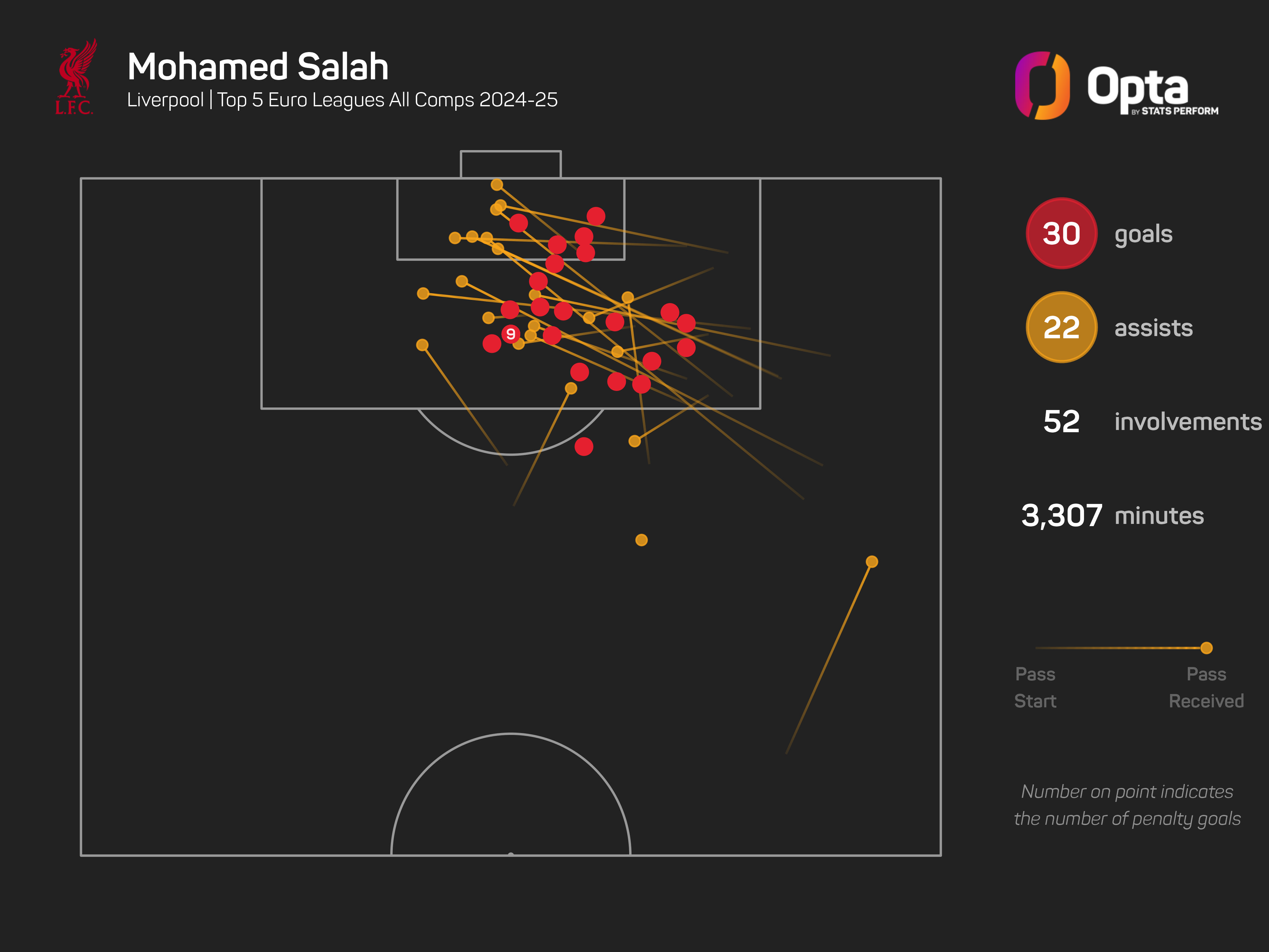 His total of 52 goal involvements is at least 12 more than any other player from Europe's top five leagues, with Barcelona's Raphinha on 40 (24 goals, 16 assists). PSG winger Ousmane Dembele is joint-seventh on that list with 26 goals and six assists.