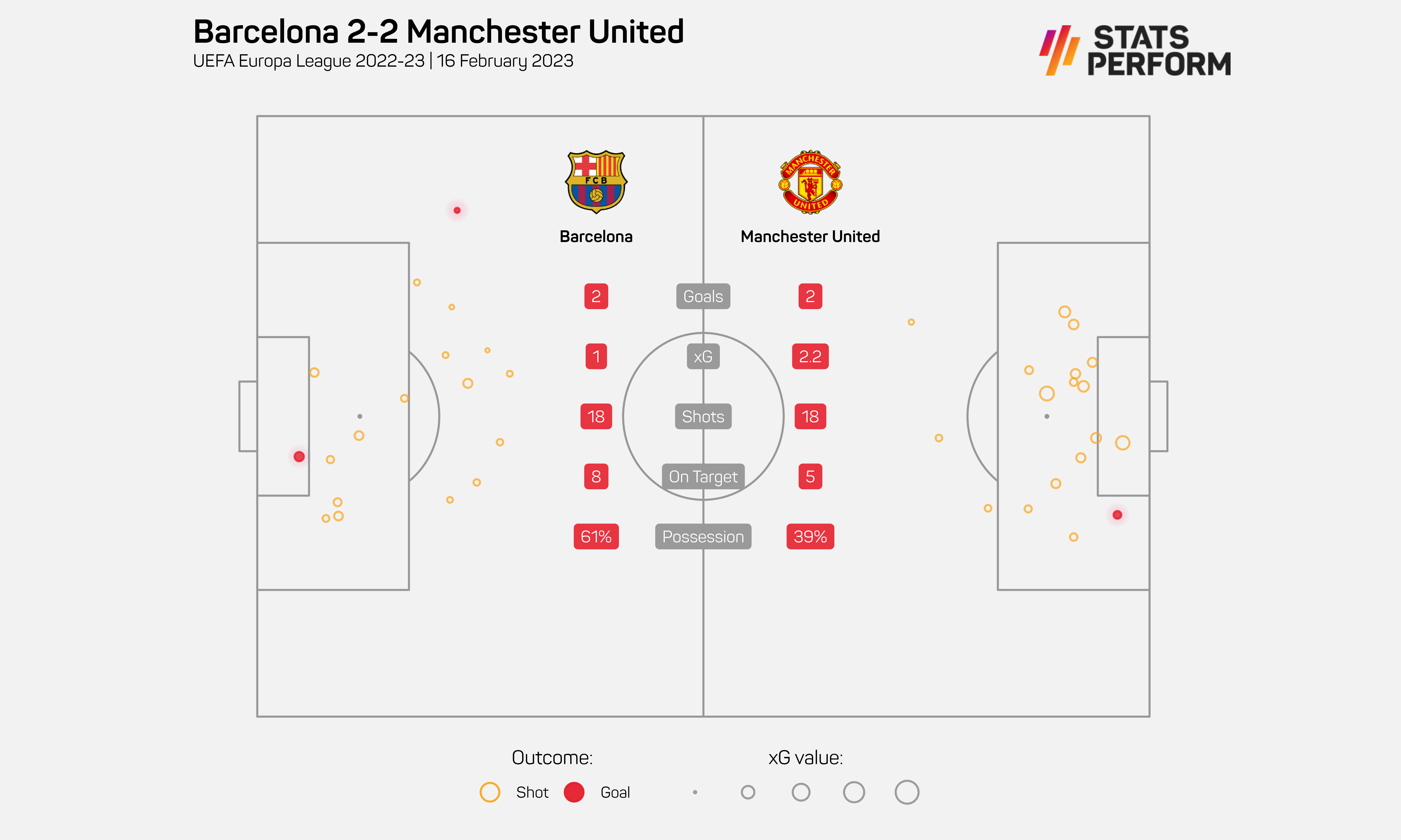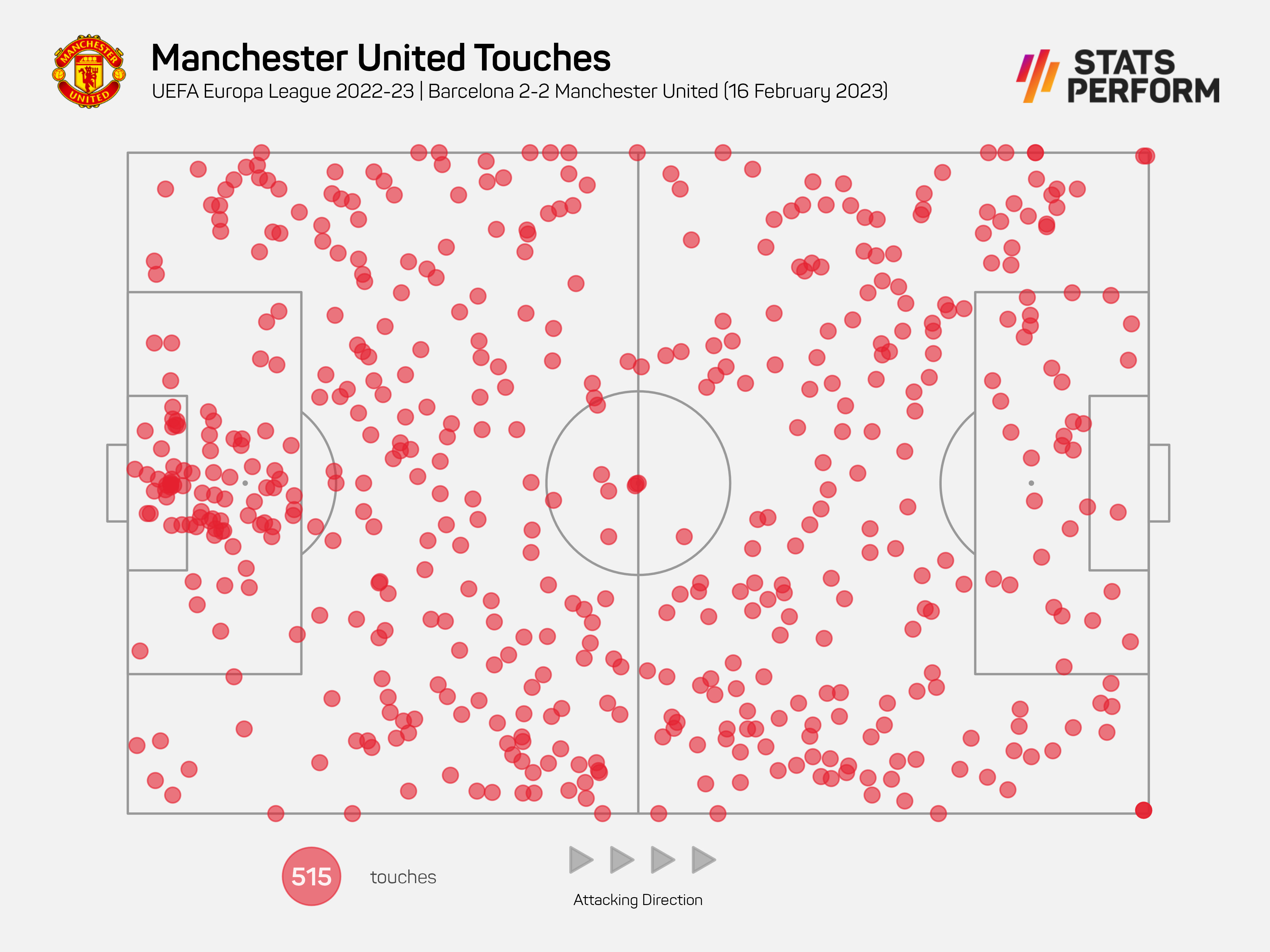 In the 2008 final against Chelsea, United had 19. Away to Real Madrid in February 2013, they had 17. At Camp Nou in April 2019, they managed 12. The only club of a comparable stature to Barca against whom the Red Devils have broken that 20-touch barrier was Milan in March 2021, but that Rossoneri side wasn't a particularly impressive team; this Barca side is currently eight points clear of the Real Madrid team that pulverised Liverpool at Anfield earlier this week.
