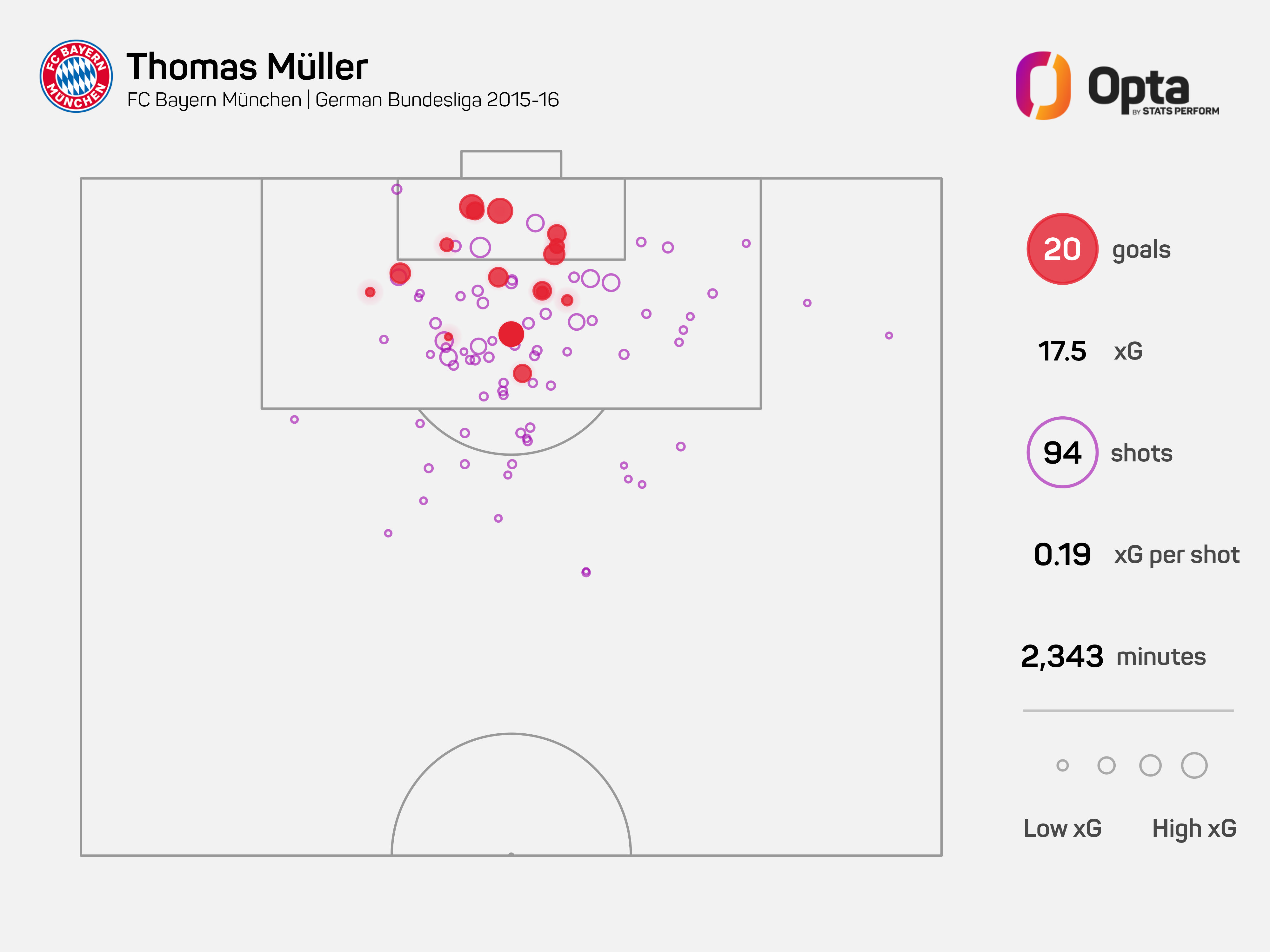 Muller has had 2,448 touches in the opposition box, over 500 more than any other Bayern team-mate since he made his Bundesliga debut, while he has also had the most duels (4,314), winning 1,904 of them.