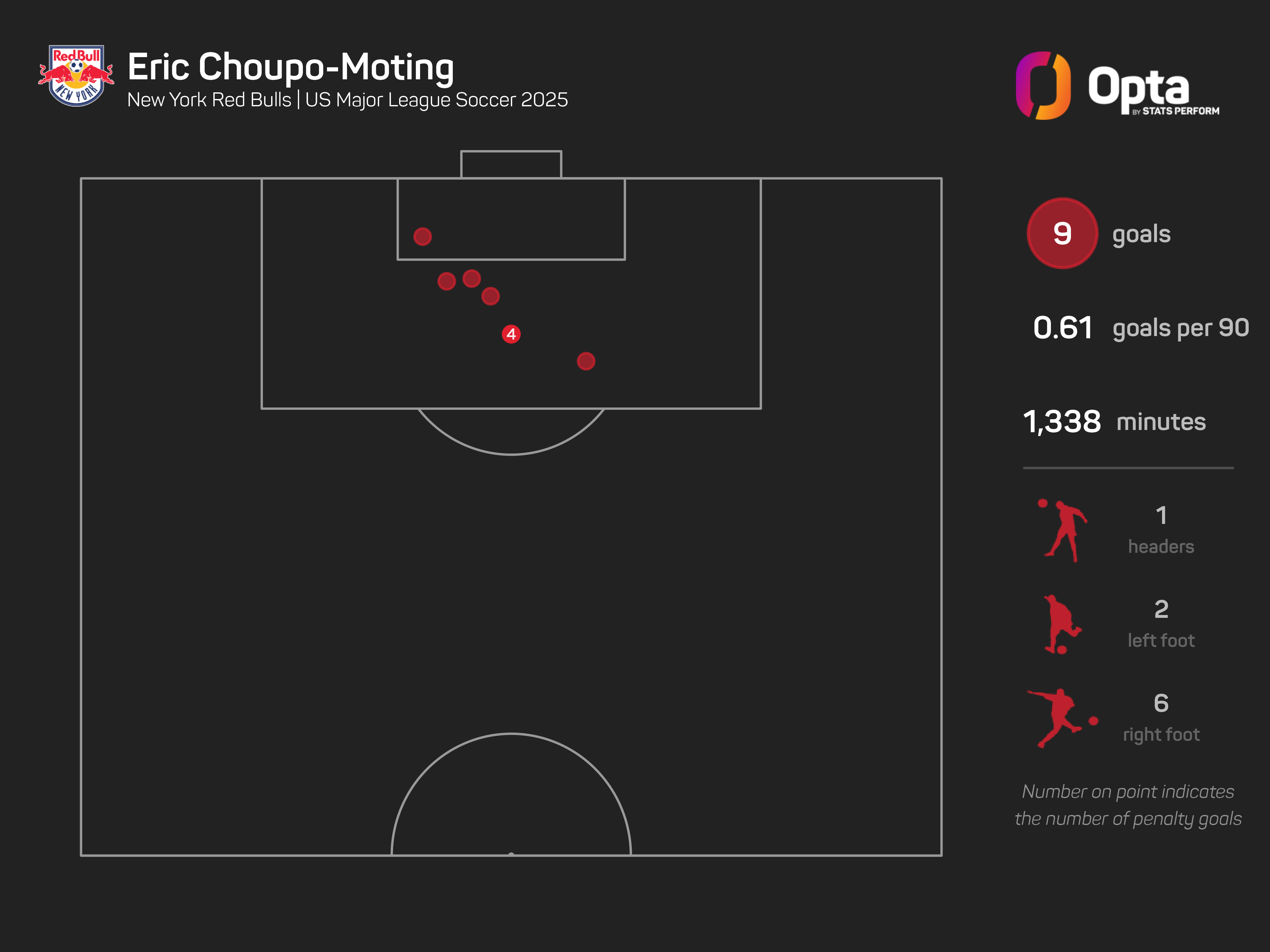 He also ended the win over Charlotte with team-high totals for shots on target (two) and shots in the box (two), while also contributing a whopping 1.58 expected goals (xG) tally to NYRB's 2.15 total in the contest.