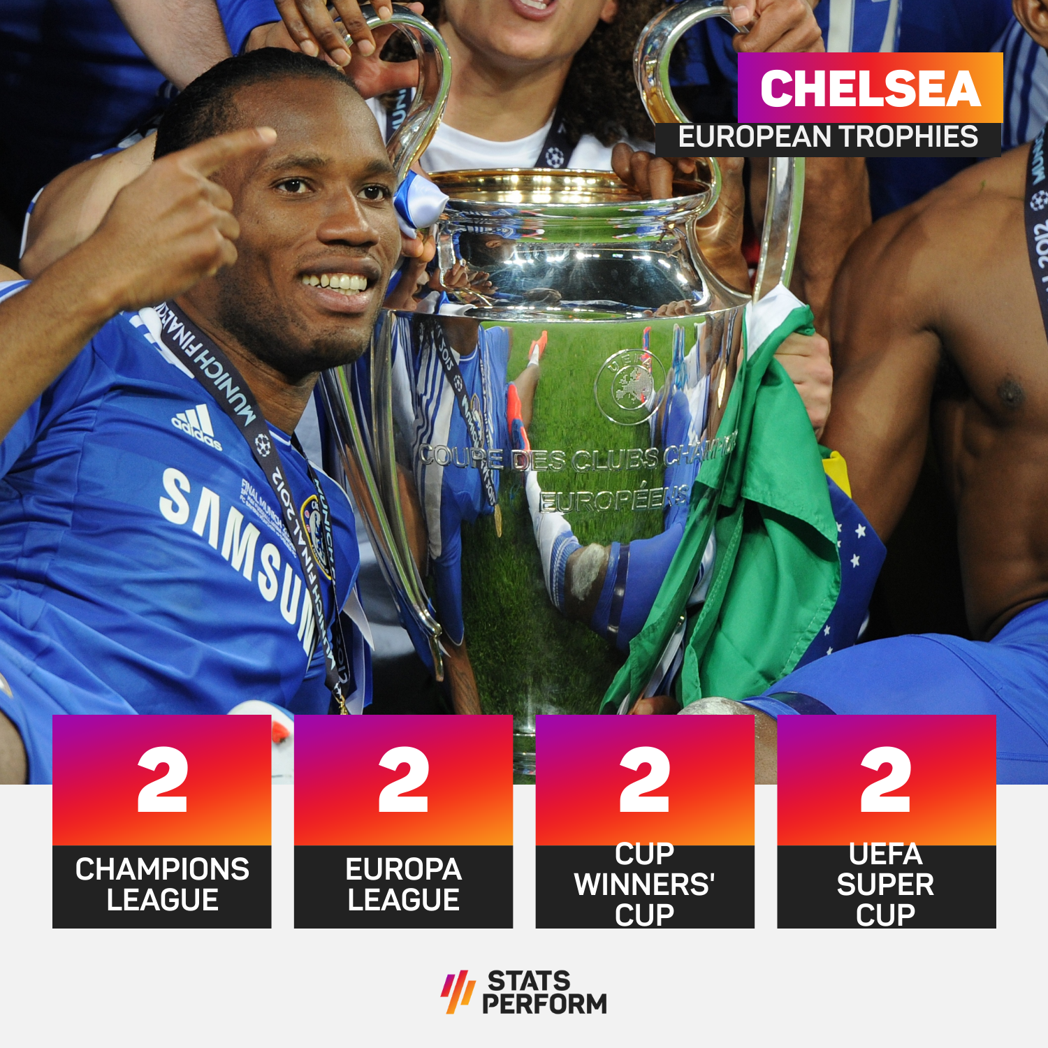 Having won the UEFA Cup Winners' Cup (1971, 1998), the Champions League (2012, 2021) and the Europa League (2013, 2019), they could become the first team in history to win four different major UEFA tournaments (excluding the Super Cup).