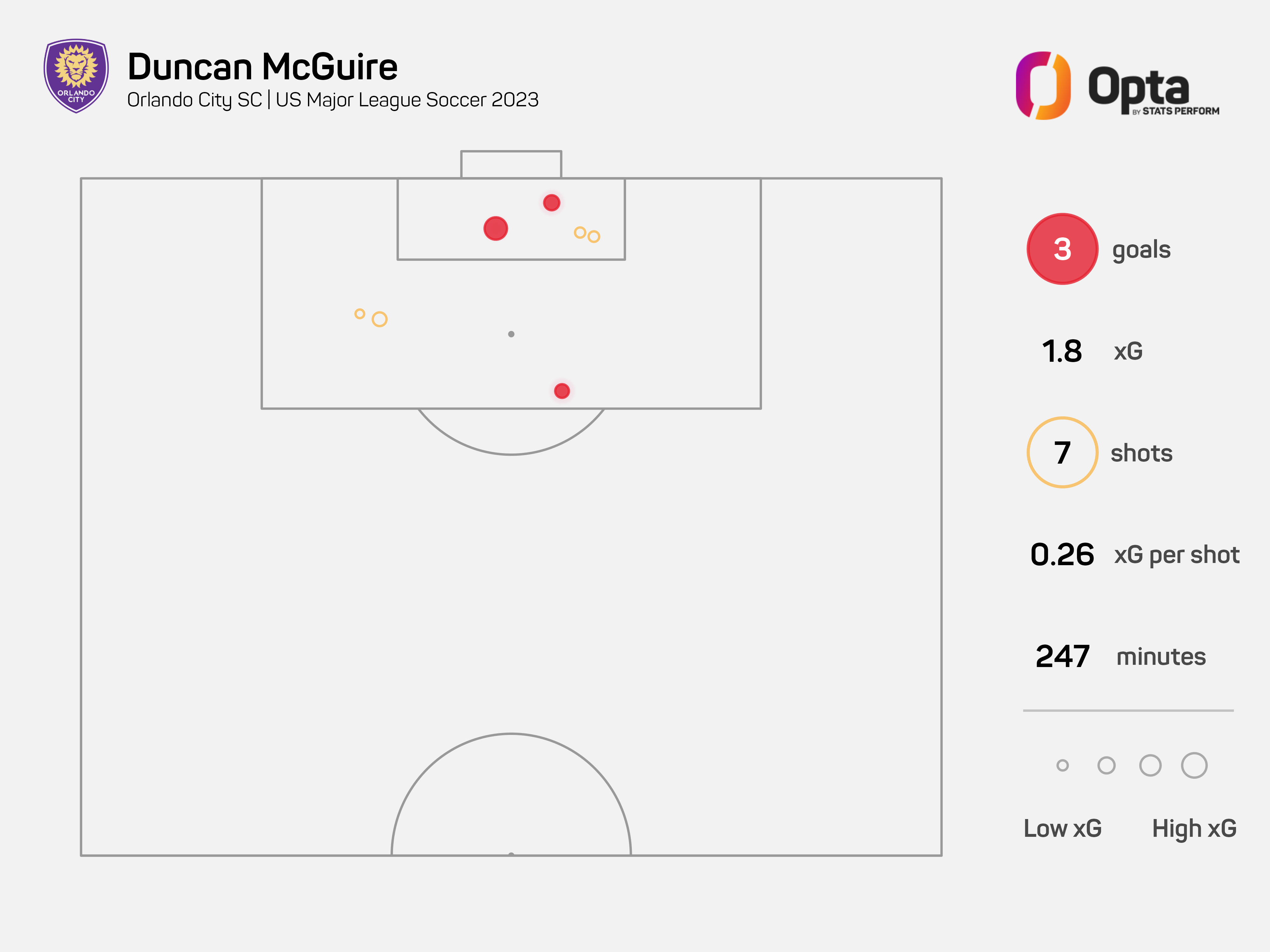 McGuire has scored three goals in his first six MLS appearances, including scoring Orlando's last two goals. McGuire has hit the target with all seven shots he's attempted in MLS, the only player to attempt more than three shots with a 100 per cent shooting accuracy this season.