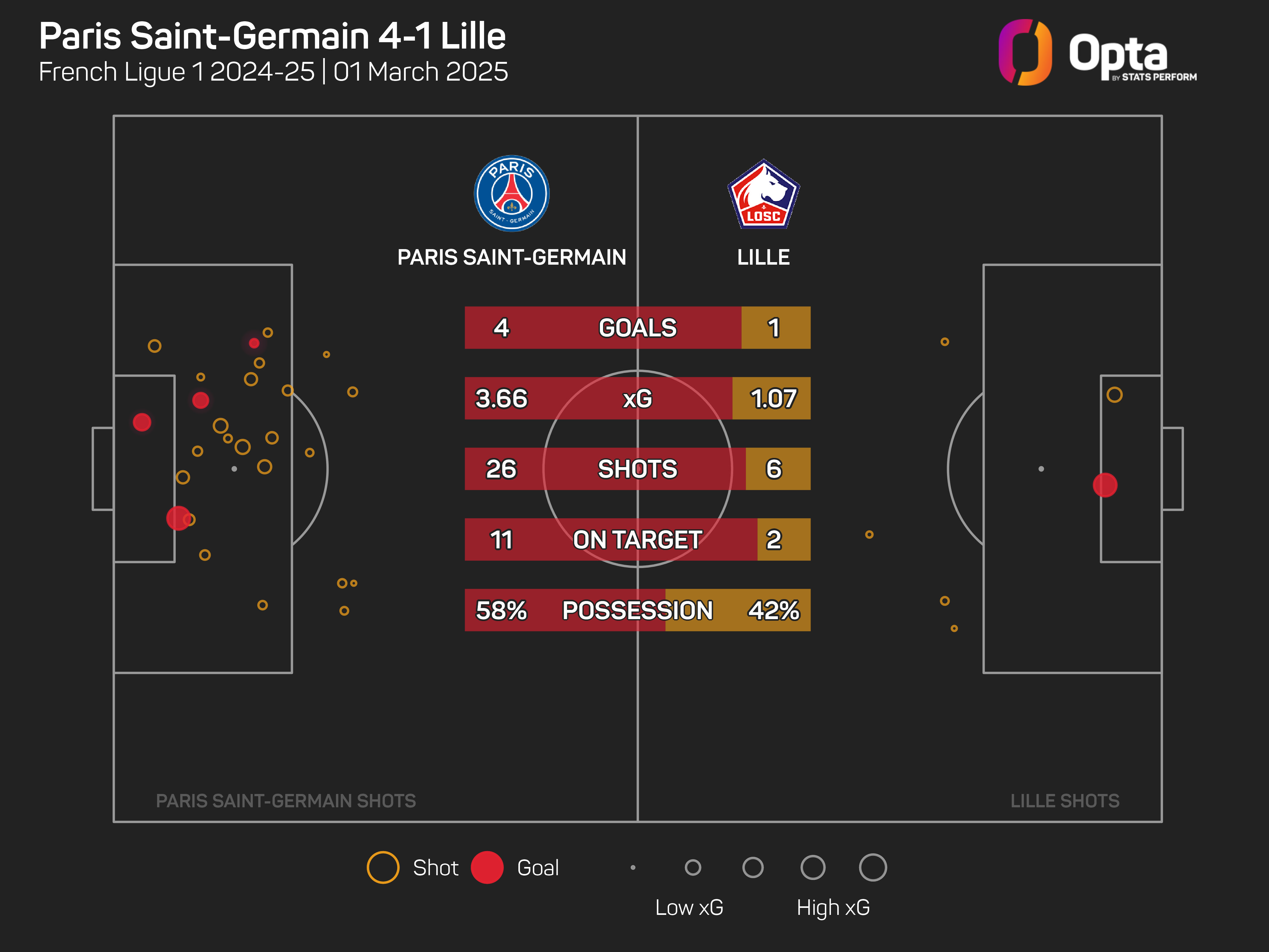 PSG's waves of attacks forced Lille goalkeeper Lucas Chevalier into several saves as he tried to stem the tide early on.
