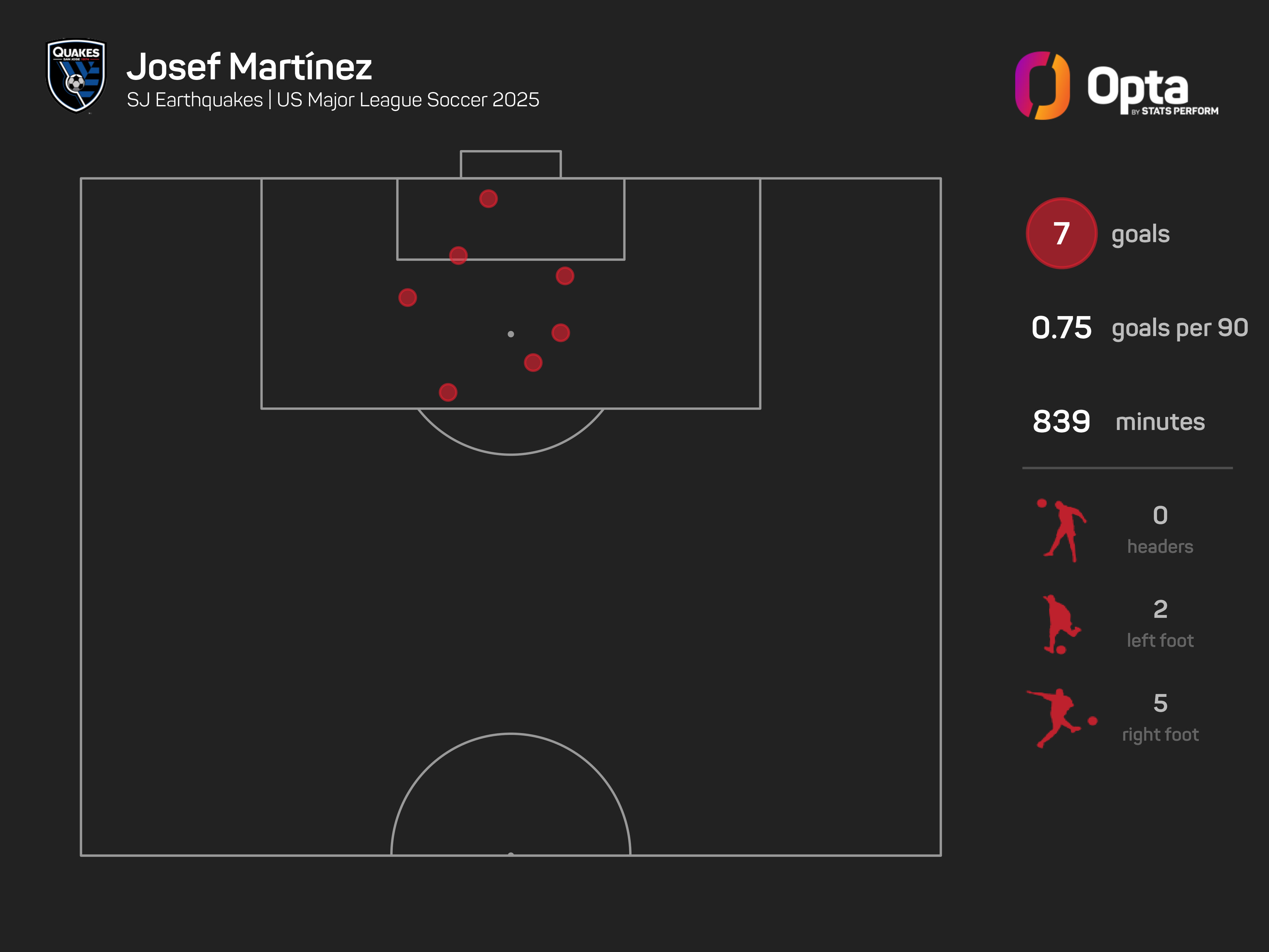 Martinez came off the bench to score San Jose's only goal in their defeat to St. Louis last time out, taking his tally to seven in the MLS this season.