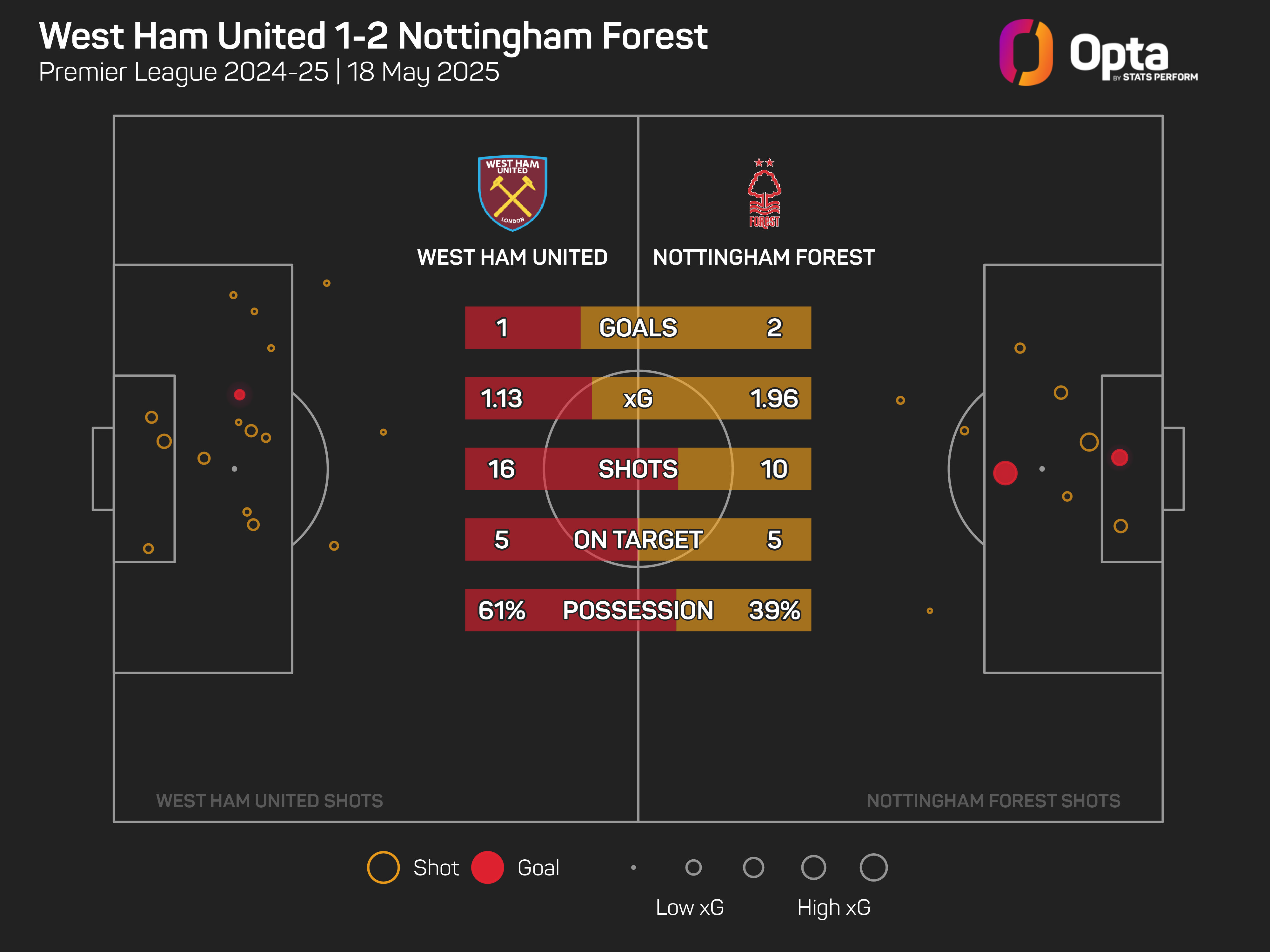 However, that is their sole win in 10 after a 2-1 defeat to Nottingham Forest in their last home match of the season last weekend, with West Ham sitting 15th in the table with 40 points.