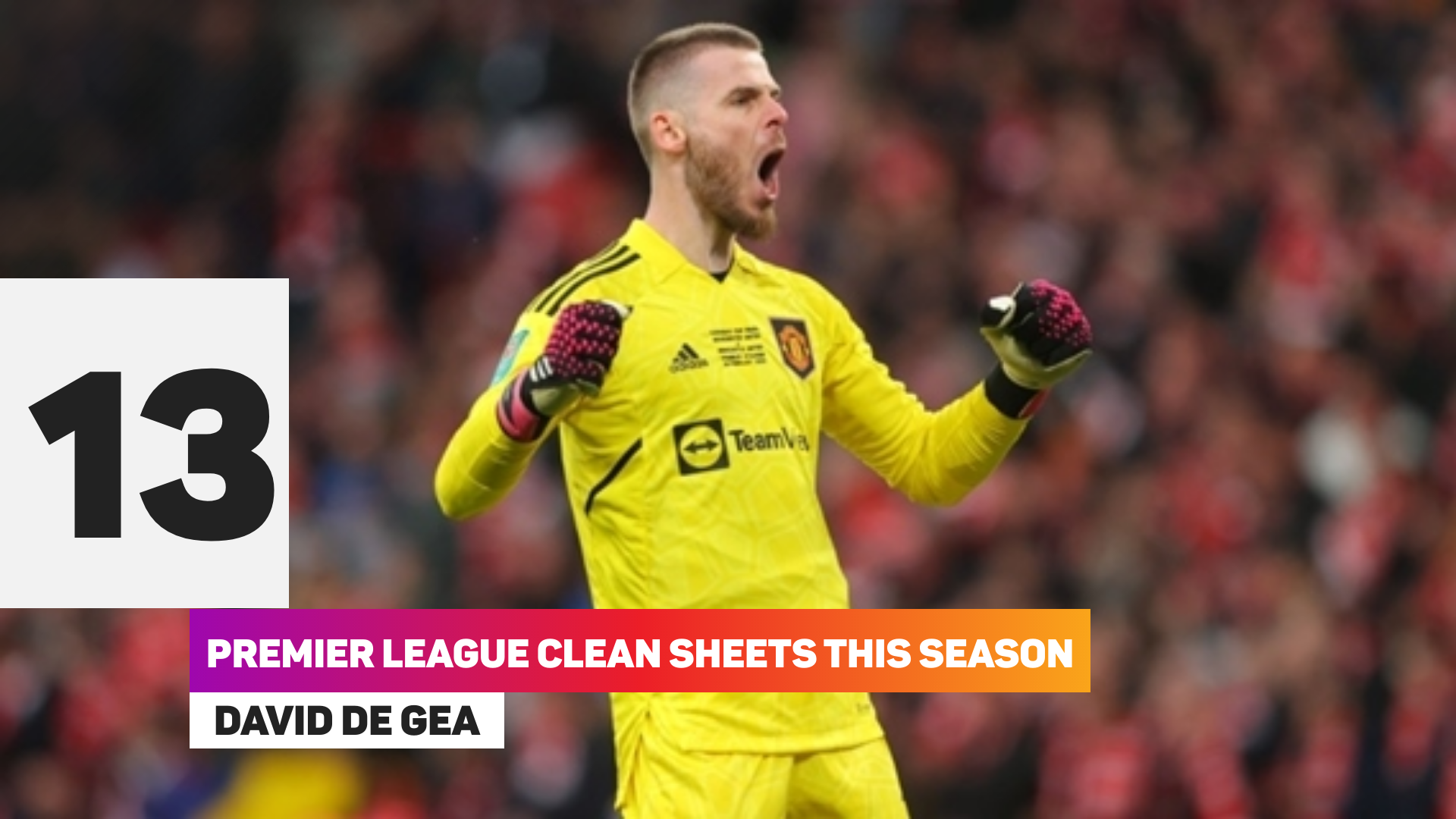Manchester United goalkeeper De Gea has the joint-highest number of top-flight clean sheets this season, racking up 13 along with Newcastle United's Nick Pope.