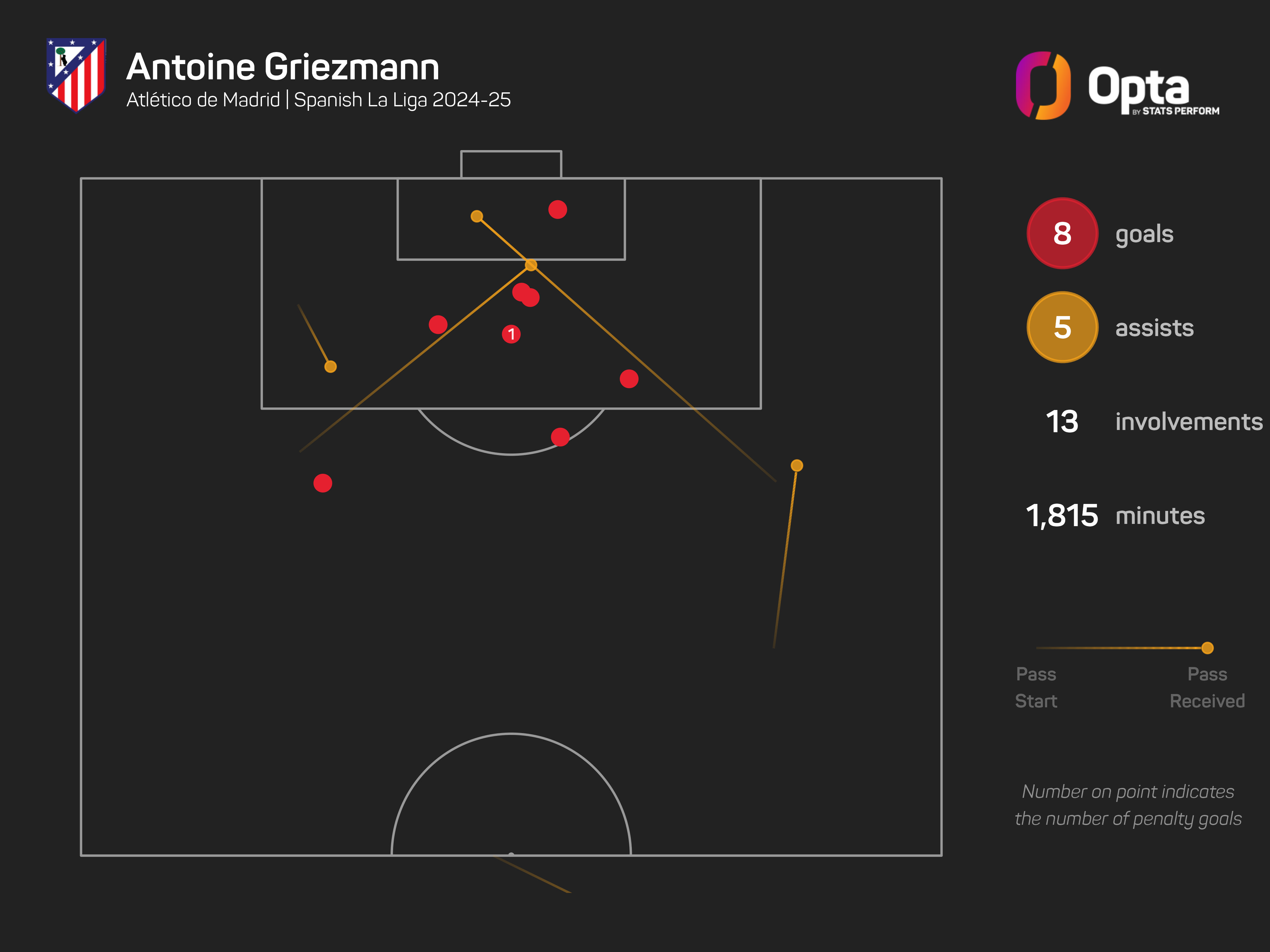 And their title charge has been led by Griezmann, with the Frenchman notching 13 goal involvements (eight goals, five assists) in the top-flight so far this season.