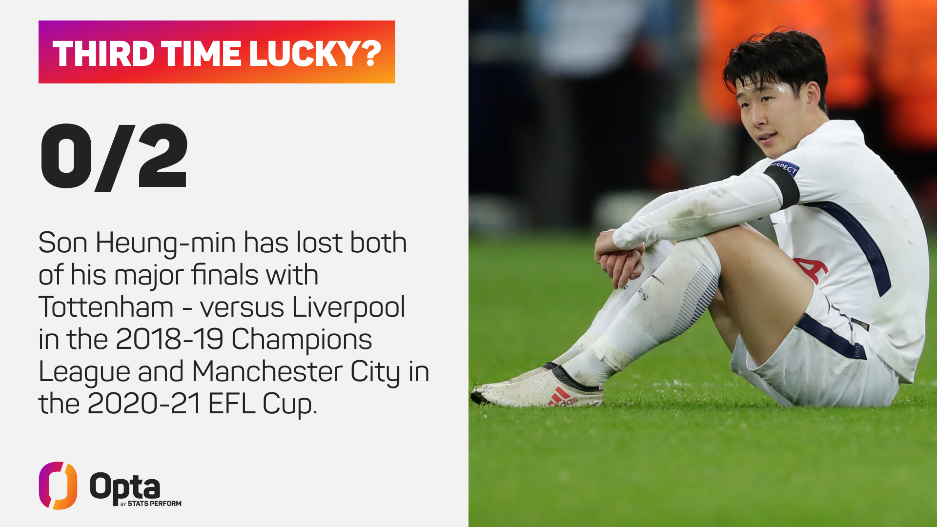 The South Korean superstar has lost two finals with Tottenham – in the Champions League in 2019 and the EFL Cup in 2021 – and also finished as a Premier League runner-up in 2016-17.