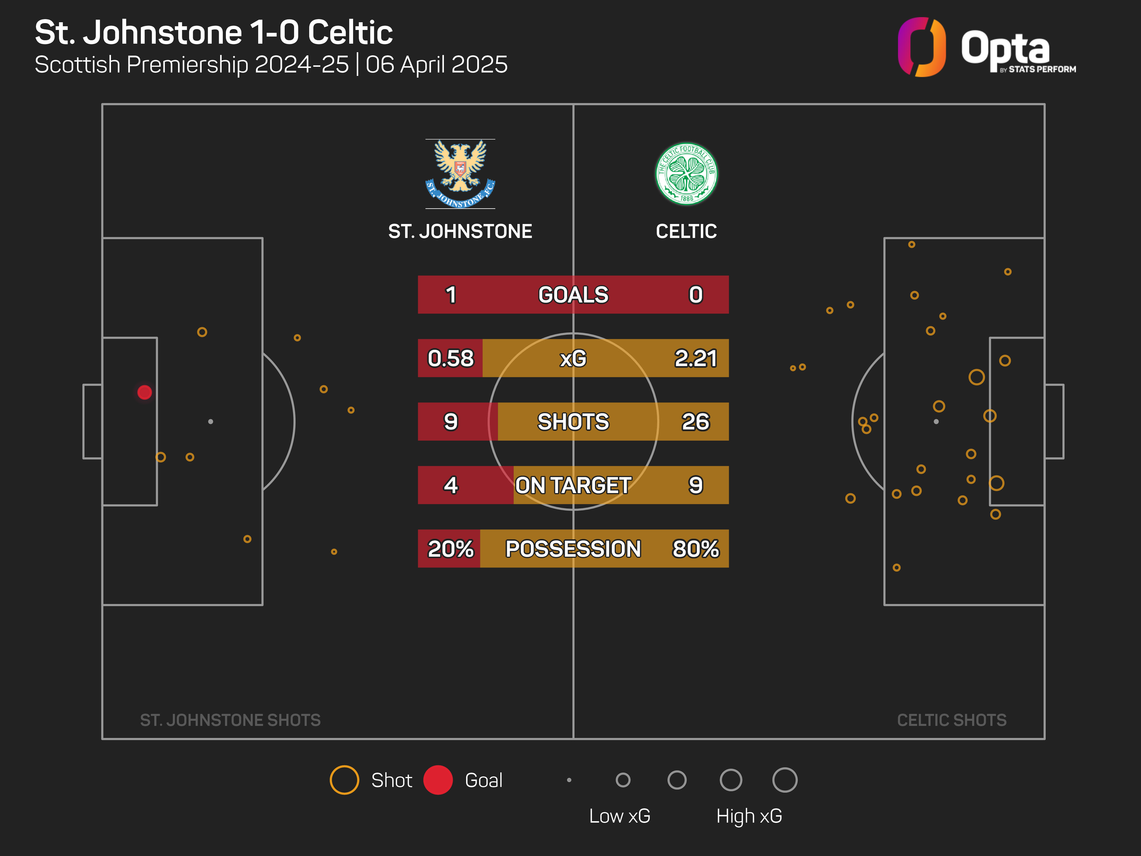 But they made the most of their chances – and an inspired goalkeeping performance from Fisher – to finally halt that streak, having only created 0.58 expected goals (xG) to Celtic's 2.2.