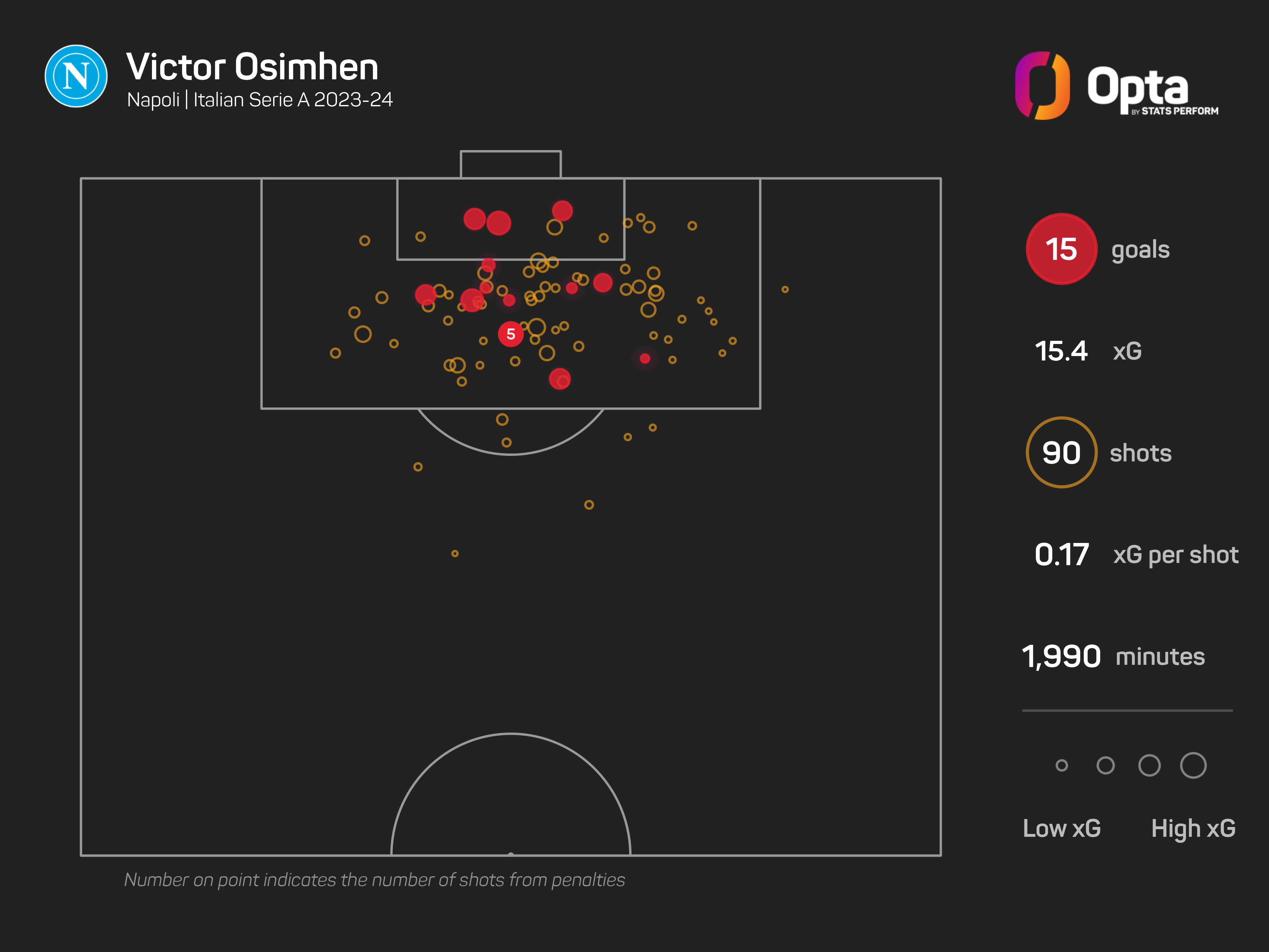 Osimhen scored 15 goals in 25 Serie A appearances during an injury-affected 2023-24 campaign, having netted 26 times as they were crowned champions the previous season.