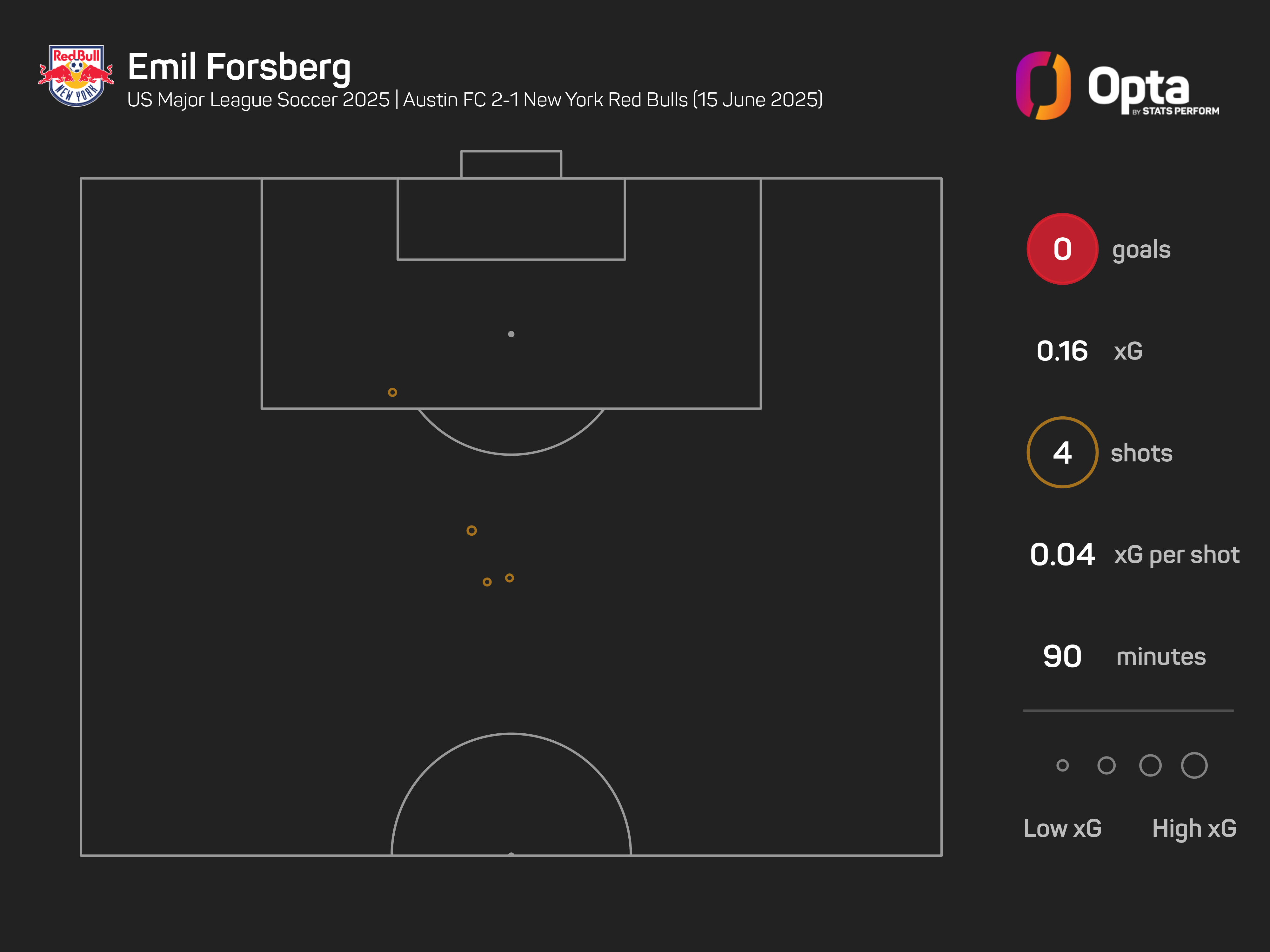 Forsberg contributed to eight of New York's 15 shots against Austin (four shots, four chances created).