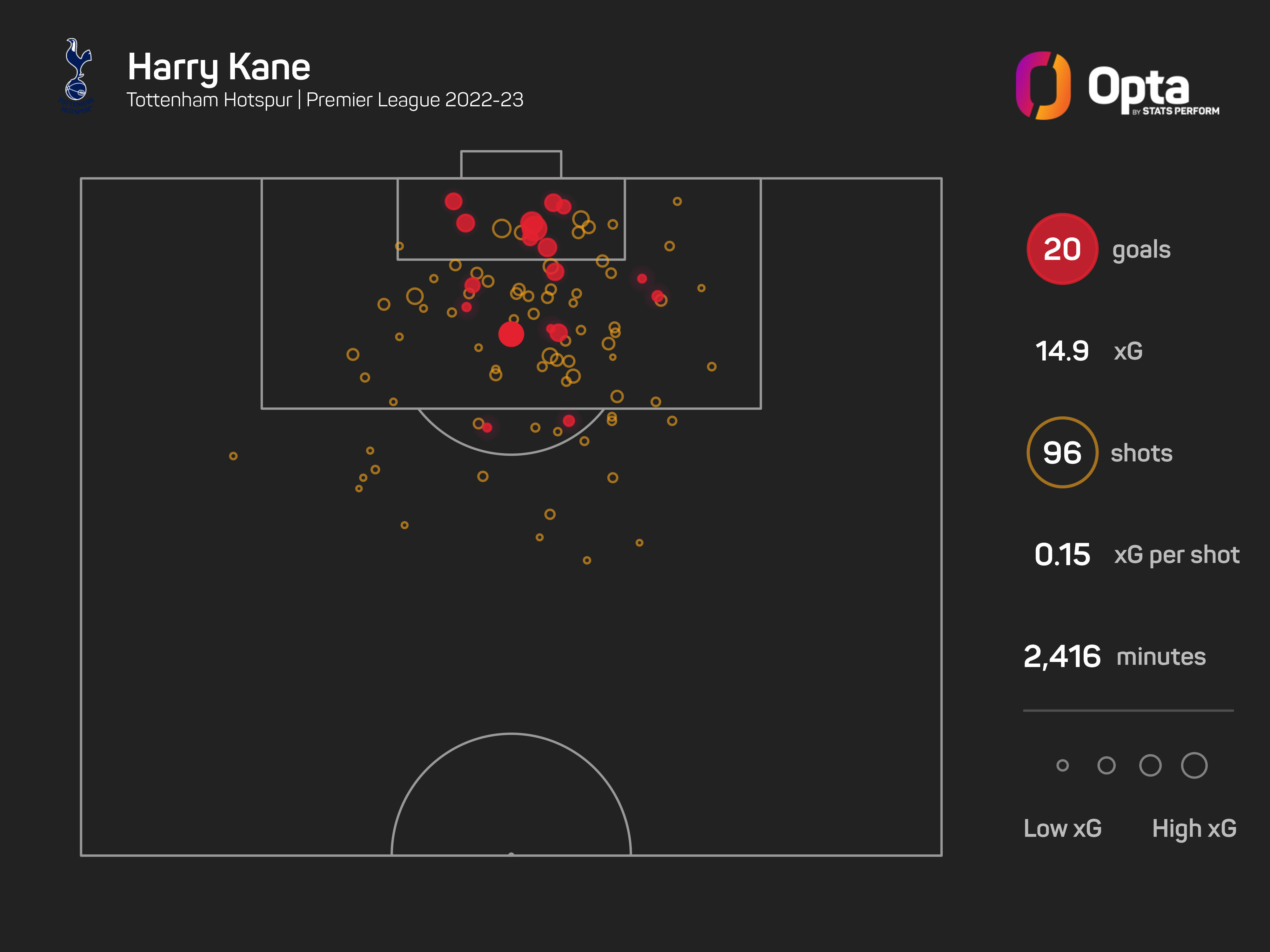 Kane's double against Nottingham Forest last time out moved him onto 20 Premier League goals for the season – the sixth time in his career he has achieved that feat.
