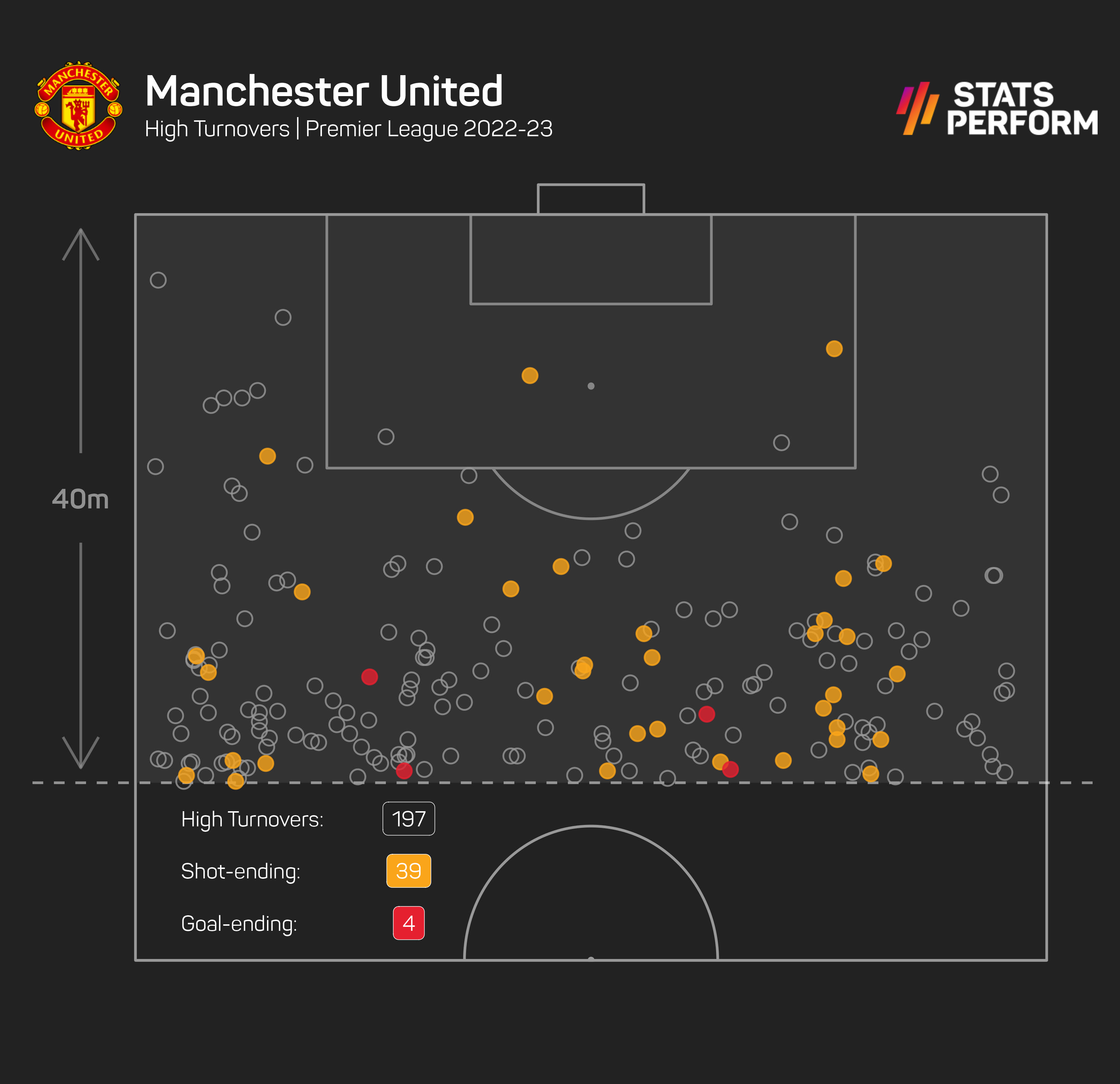 Under the former Ajax boss, United have been winning possession in the final third at an average of 5.5 times per game, compared to Solskjaer's era when it was 4.2, Van Gaal's at 4.1, Mourinho's at 3.9 and Moyes at 2.7.