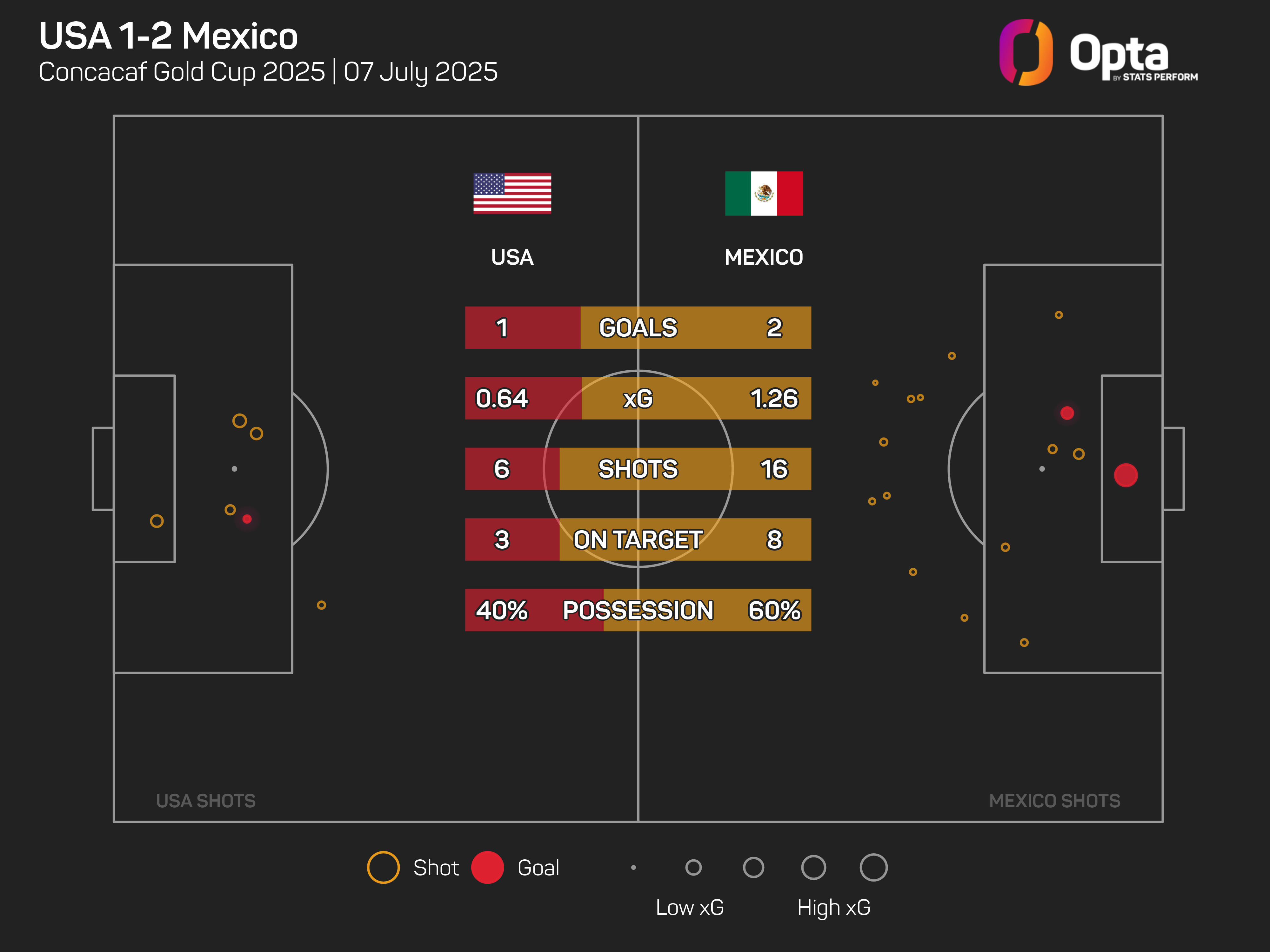 Mexico's plans for this tournament encountered far less disruption than those of their neighbours, but the USA made a dream start when Richards joined Landon Donovan (three) and Giovanni Reyna (two) as their third player to net in multiple finals, having also scored in the 2023 CONCACAF Nations League showpiece.
