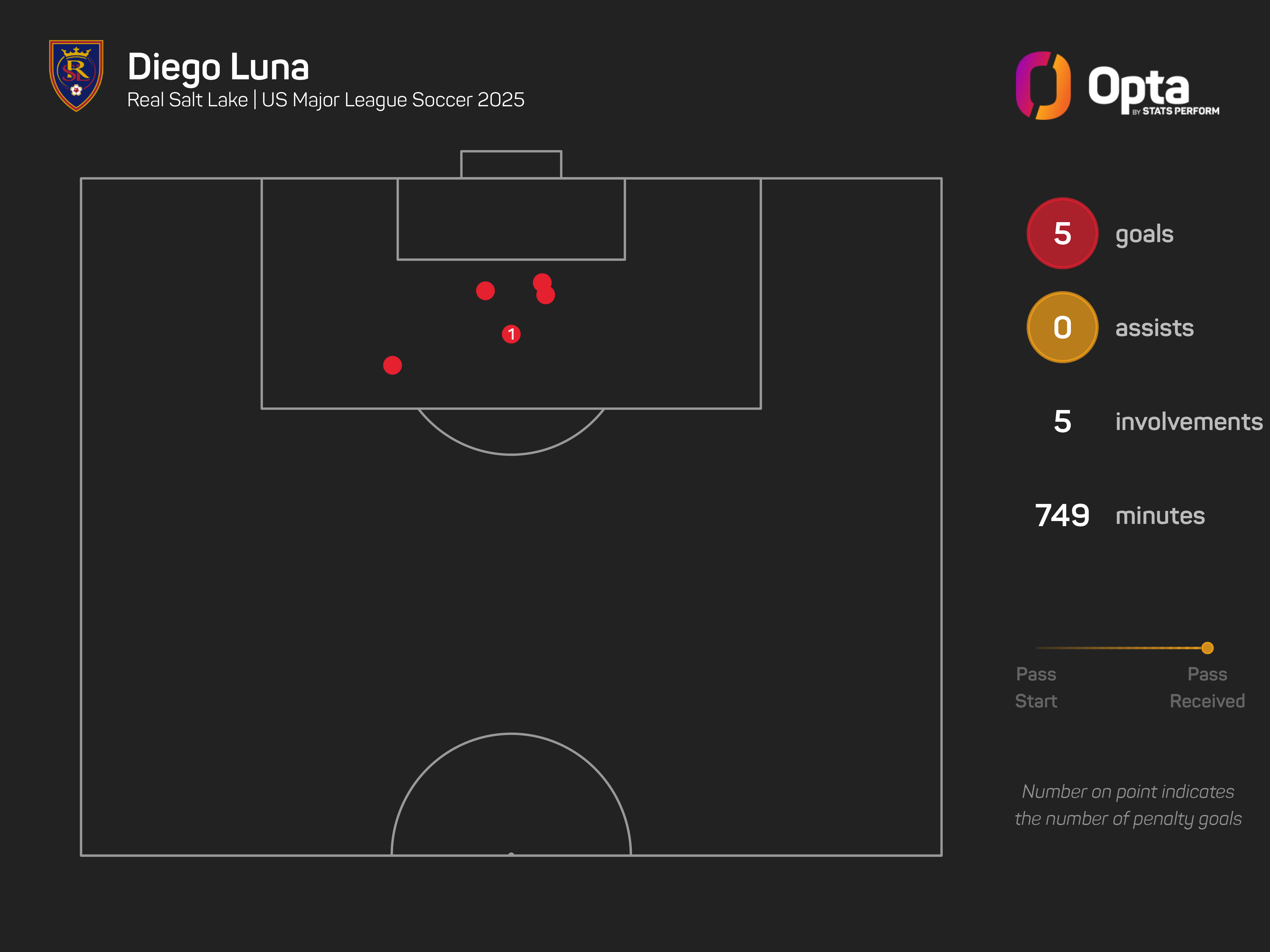 Luna bagged a brace in Real Salt Lake's win over San Diego, taking his tally to five MLS goals in nine appearances this season.