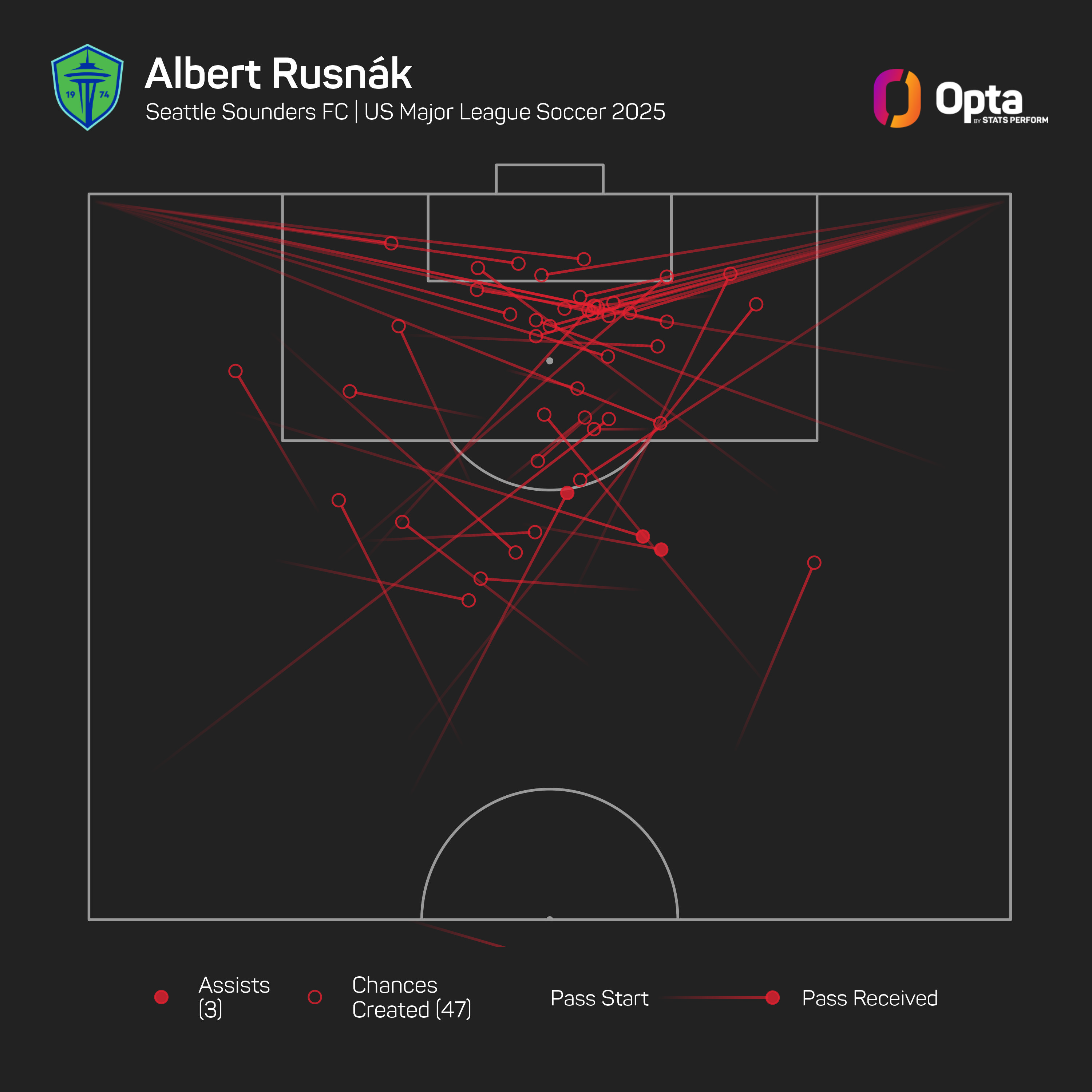 He shone in their defeat to Minnesota, creating a team-high total of four chances, taking his tally to 47 for the season, more than any other Sounders player.
