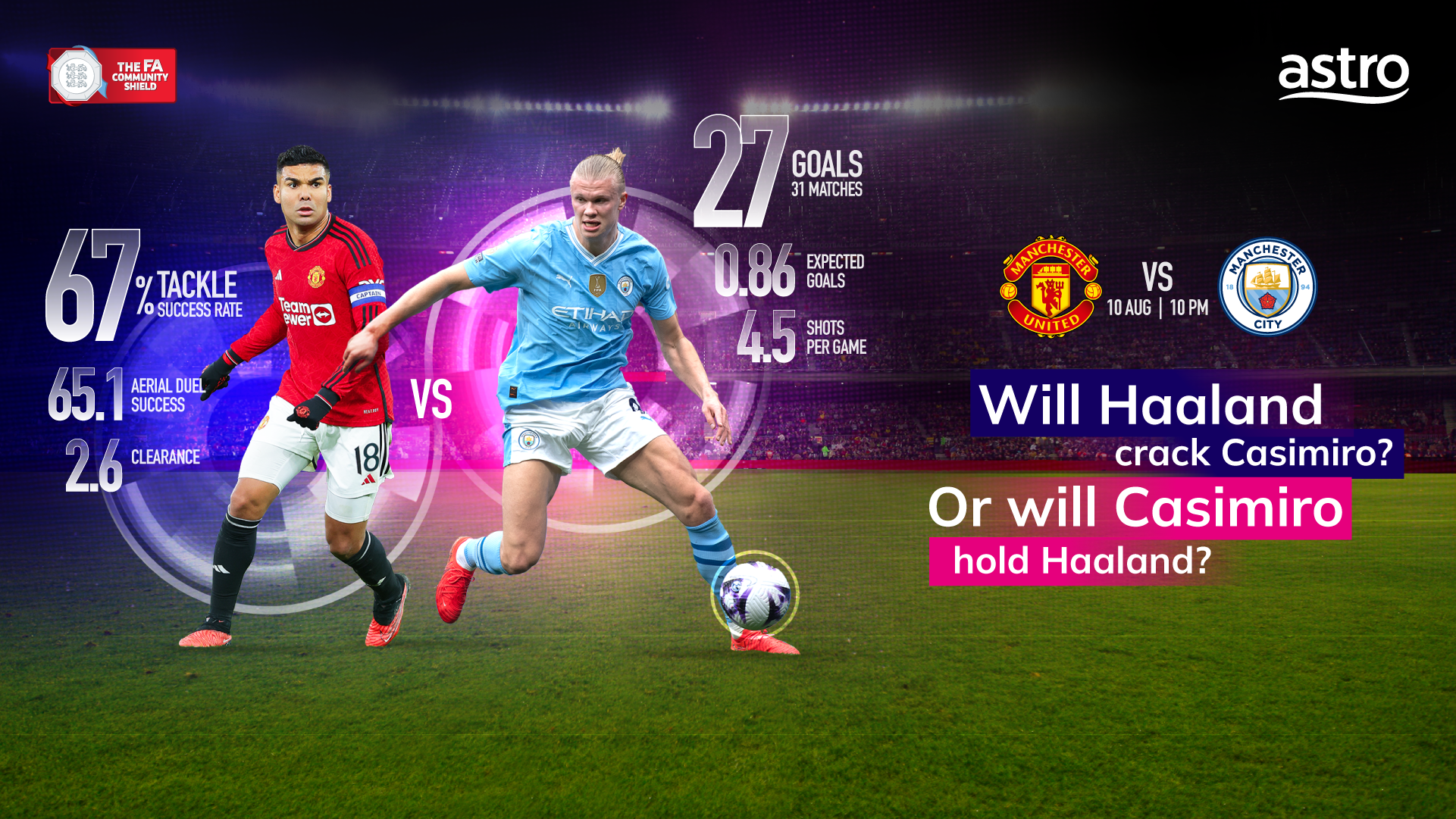 In the ever-eventful Manchester derby, let's take a closer look at Stadium Astro's stats focus of the week: Haaland vs Casimiro: