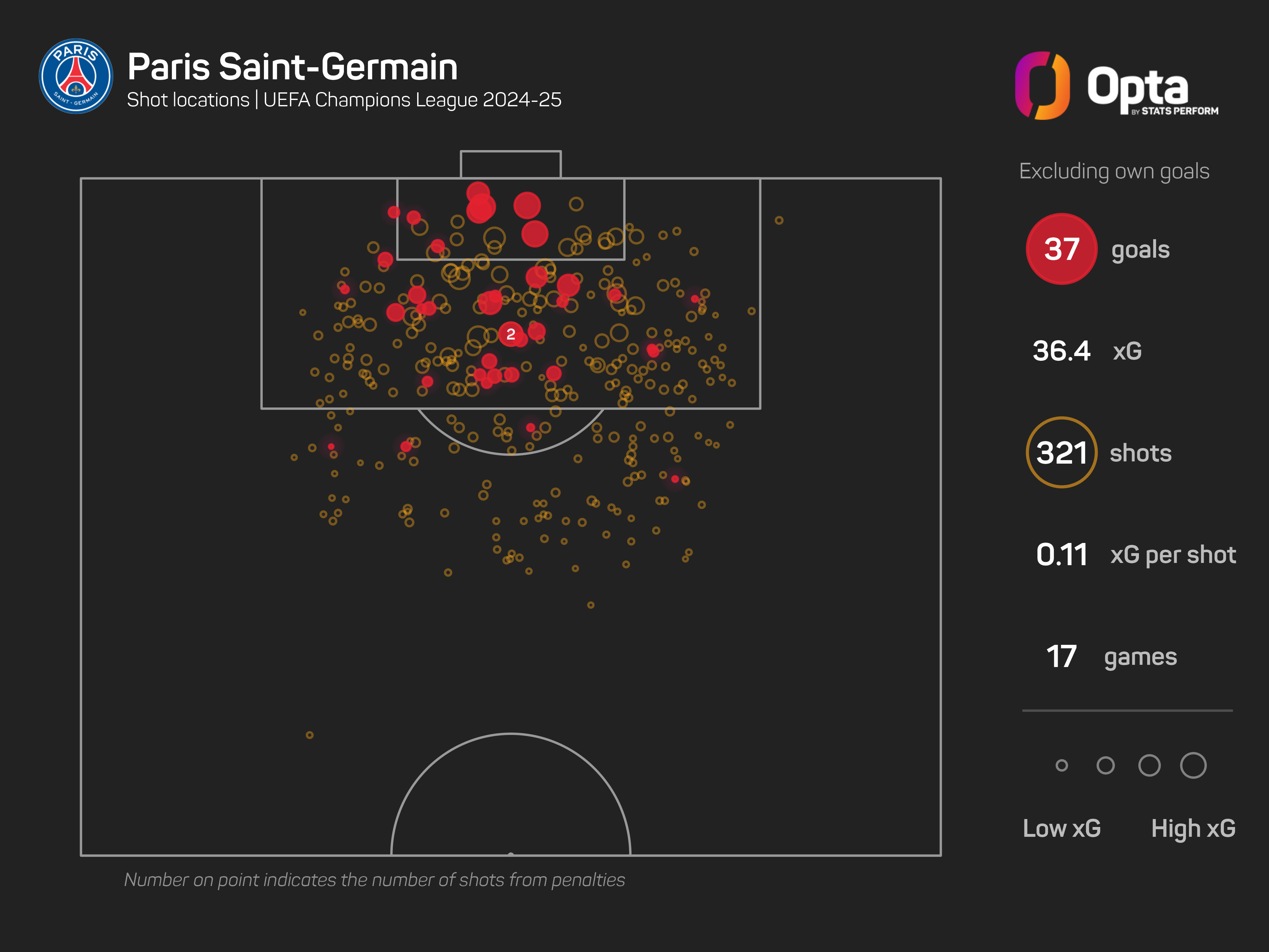 They top the European charts for expected goals (145.7), non-penalty xG (137), shots (1,097), shots on target (458) and big chances (288).