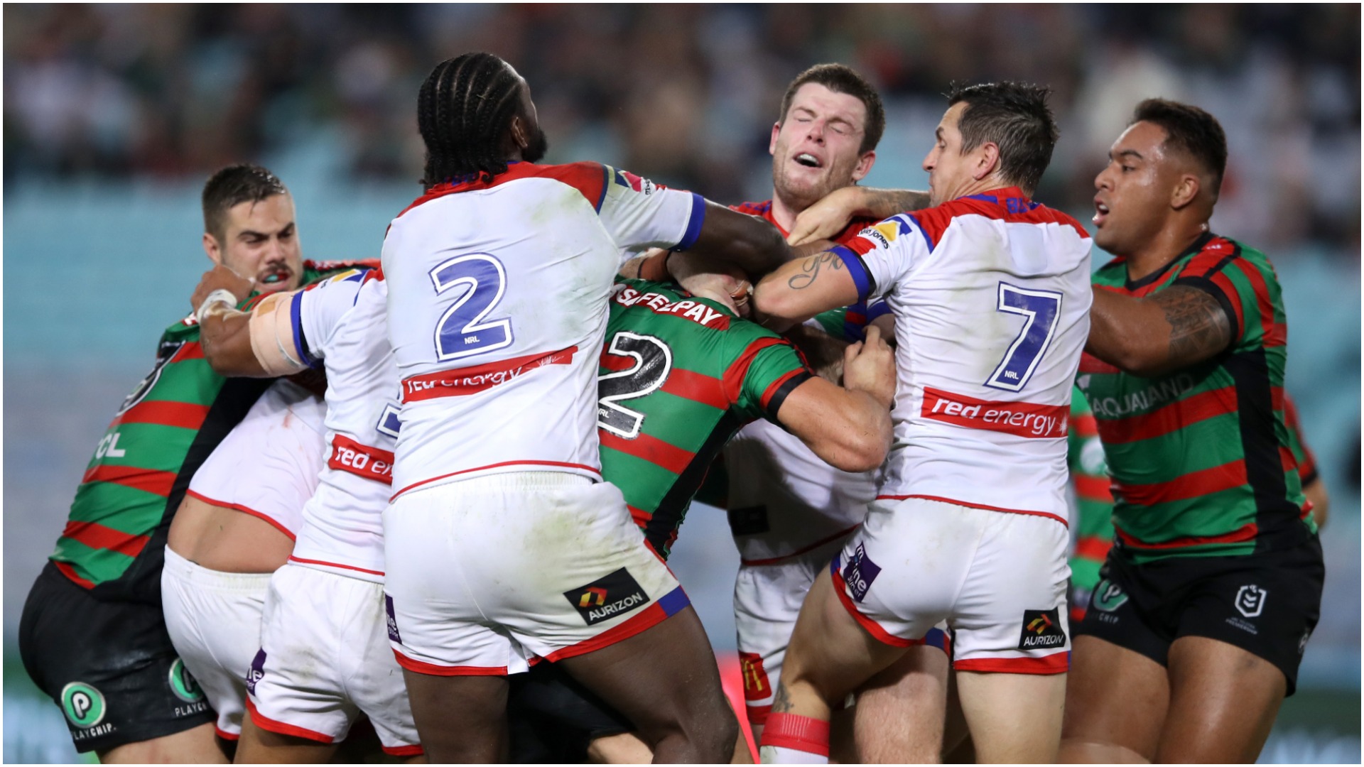 "Our boys are just breaking it up, so that's two from them that's got to go," Knights half-back Mitchell Pearce said, according to NRL.com. "One's got to get sent off. If he [Tom Burgess] headbutts him [Saifiti], he's got to go."