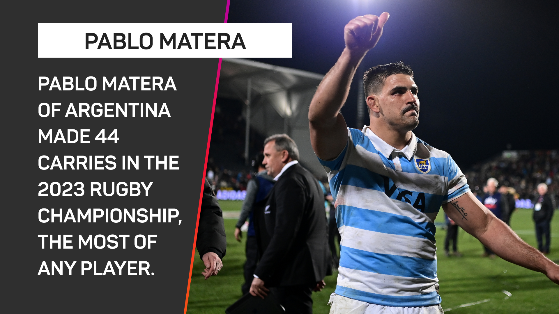 He made a competition-high 44 carries in the 2023 edition of the Rugby Championship, while his four offloads were the joint-most of any player in that tournament.