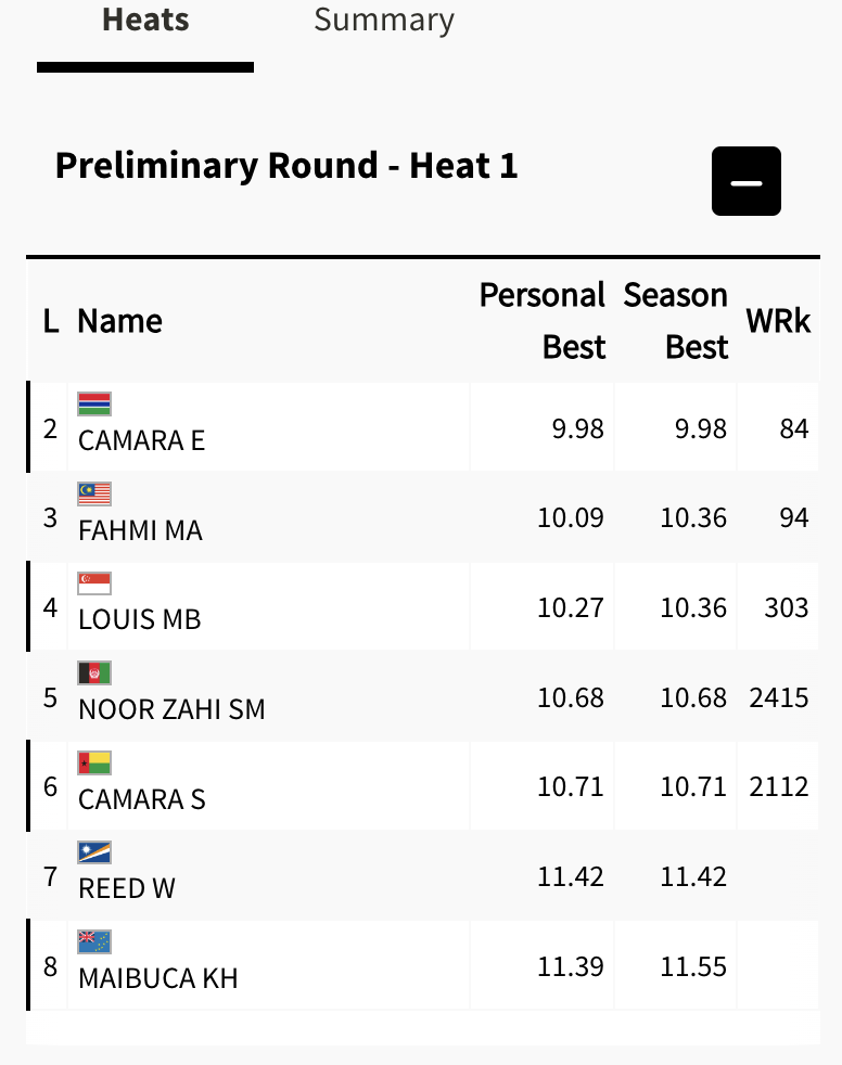 Top two runners in each 'heat' will qualify for Round 1, followed by four other runners who record the best times overall across the 'heat'.