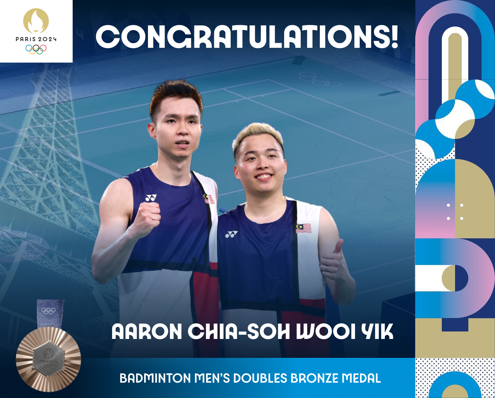 Aaron Chia and Soh Wooi Yik keep the bronze they won 3⃣ years ago in Tokyo. ???#Badminton #Paris2024 #Olympics pic.twitter.com/RVaR1oEo1R